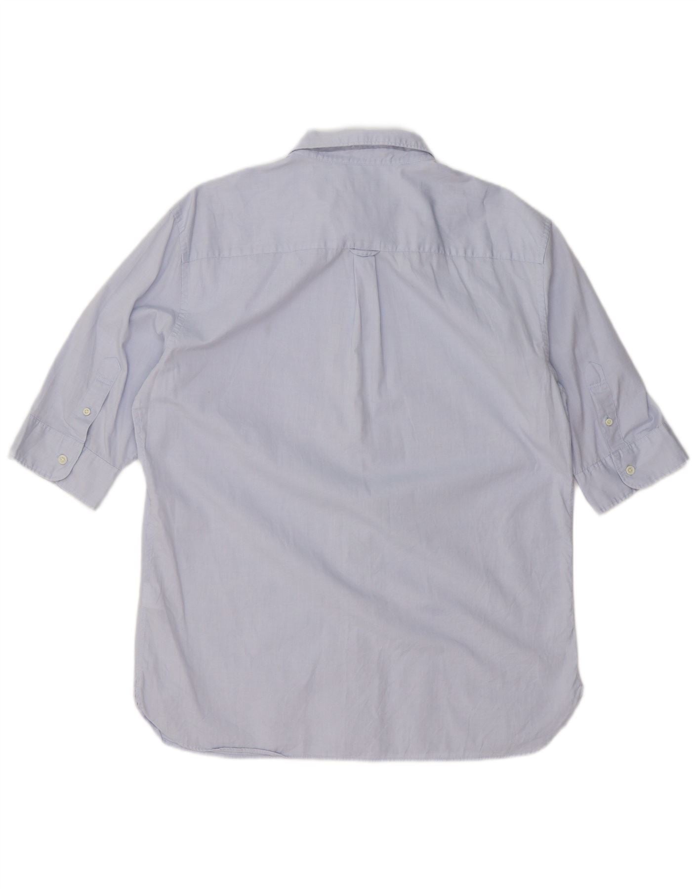 - AI Description: This All Saints men's shirt is crafted from a blue woven fabric, offering a refined texture. It features a classic collared neckline and a button-up front for a timeless appeal. The 3/4 sleeves provide a relaxed yet smart silhouette. Designed for a regular fit, it ensures comfortable wear. A subtle logo accent completes this classic style.