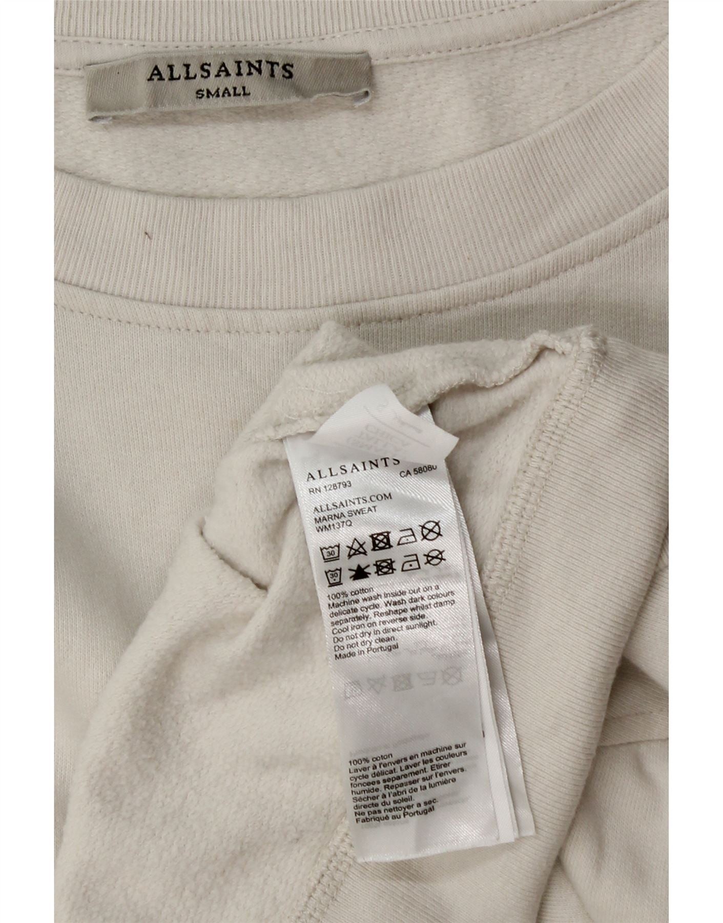 ALL SAINTS Womens Oversized Crop Sweatshirt Jumper UK 10 Small White