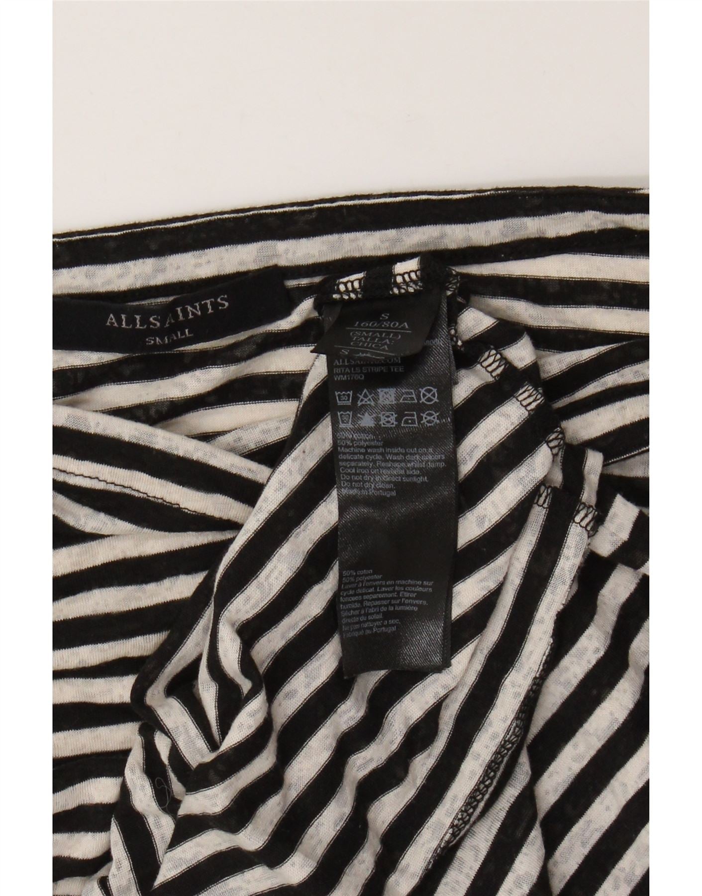 ALL SAINTS Womens Oversized Top Long Sleeve UK 10 Small Black Striped