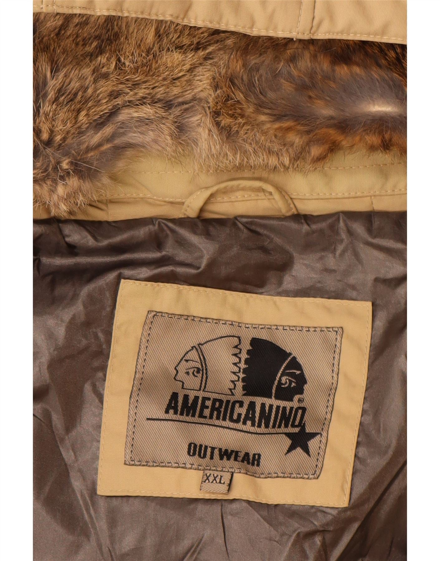 AMERICANINO Cappotto imbottito con cappuccio da uomo UK 44 2XL Nylon beige