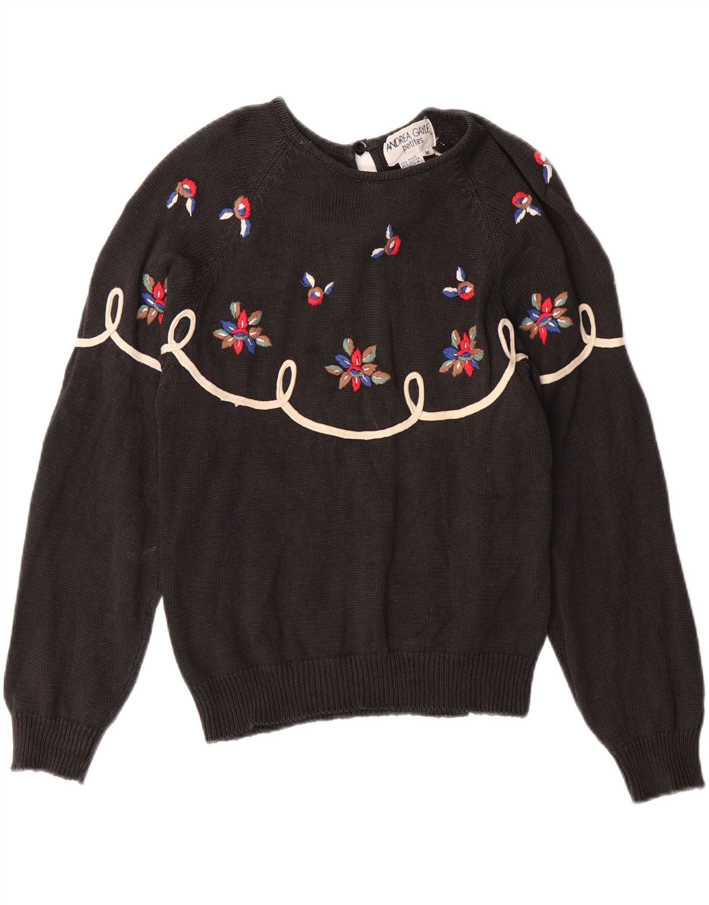 ANDREA GAYLE Maglione da donna Petites con scollo a barca UK 12 Medio Nero