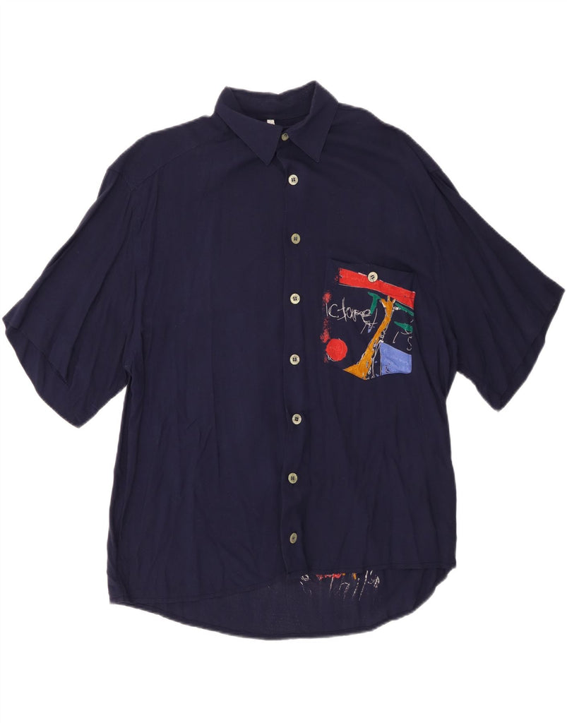 ANGELO LITRICO Camicia da uomo con motivo astratto UK 39/40 Blu navy medio