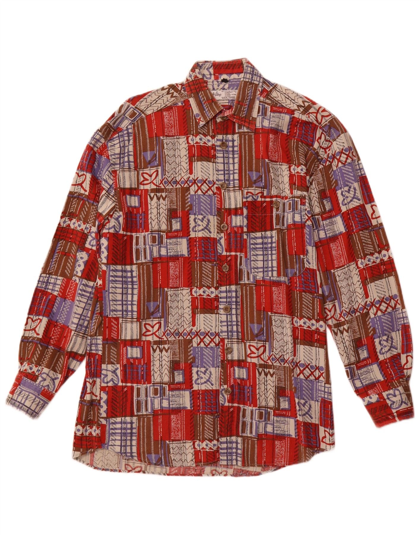Angelo Litrico Camicia da uomo in velluto a coste taglia 37/38 piccolo cotone patchwork rosso