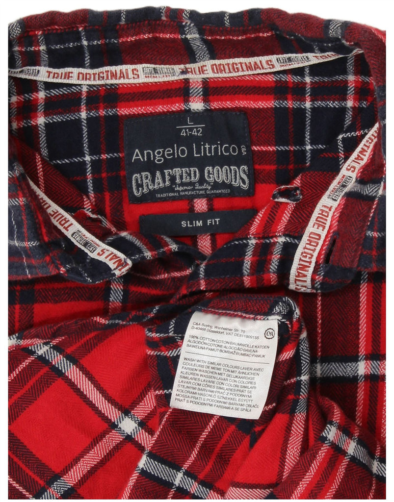 ANGELO LITRICO Camicia da uomo slim fit in flanella taglia 41/42 grande scozzese rosso