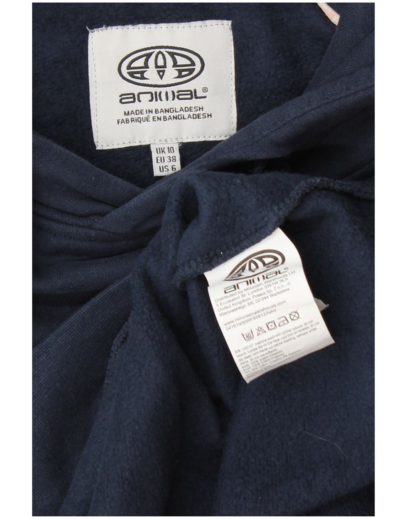 ANIMAL Womens Oversized Graphic Hoodie Jumper UK 10 Small Navy Blue Cotton