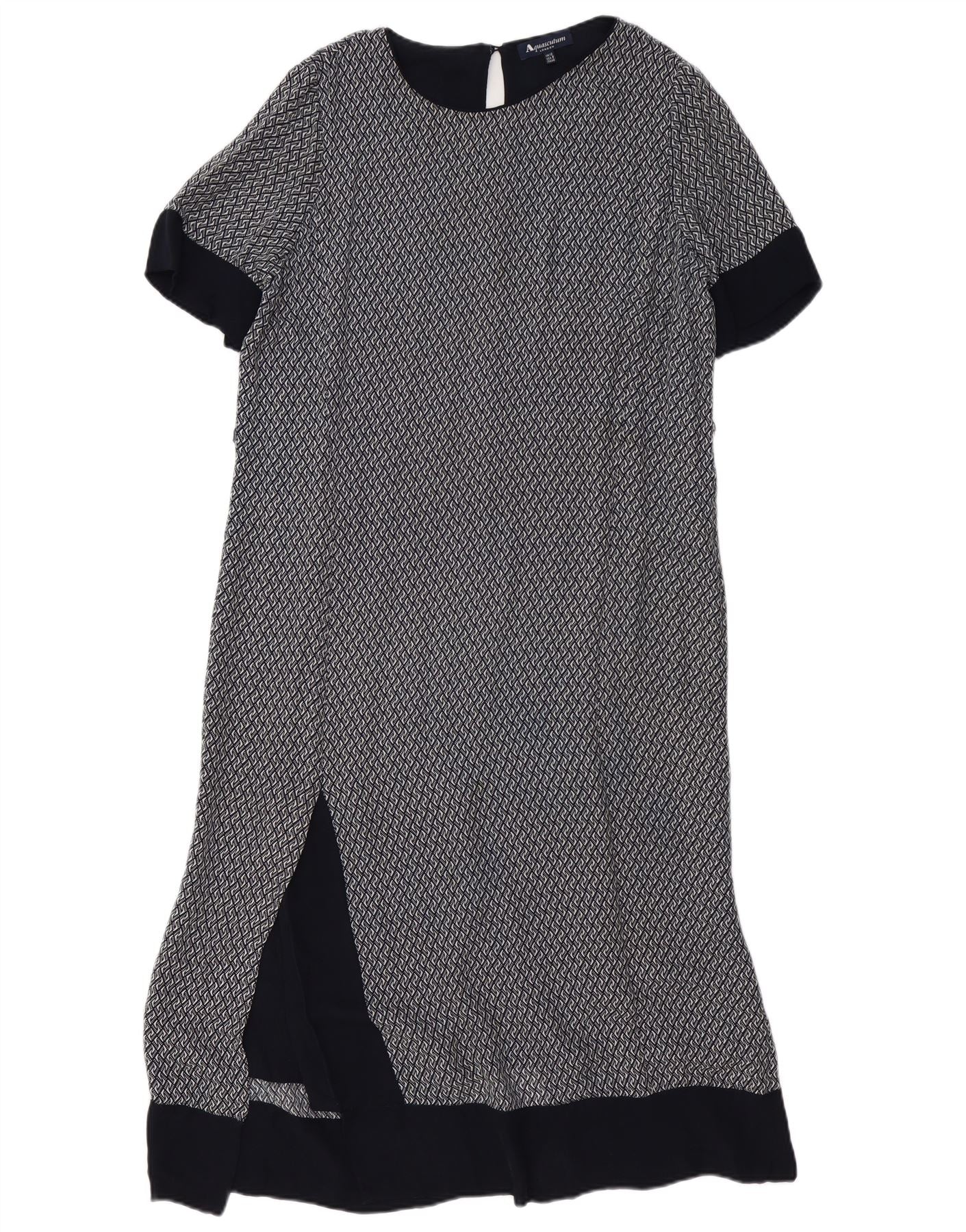 Abito lungo da donna AQUASCUTUM UK 12 Seta geometrica blu navy media
