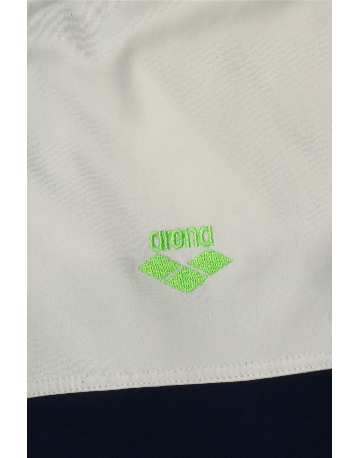 - Descrizione dell'IA: Questa giacca da tuta da uomo Arena è realizzata in tessuto jersey liscio. Presenta uno scollo con colletto e una chiusura full zip. Il design multicolore include pannelli blu navy, bianco sporco e verde vivace. Un motivo geometrico adorna le spalle, aggiungendo interesse visivo. La vestibilità regolare garantisce una vestibilità comoda. Il logo Arena ricamato fornisce un sottile accento di marca. Le maniche lunghe completano la silhouette atletica, perfetta per lo sport o le uscite casual.