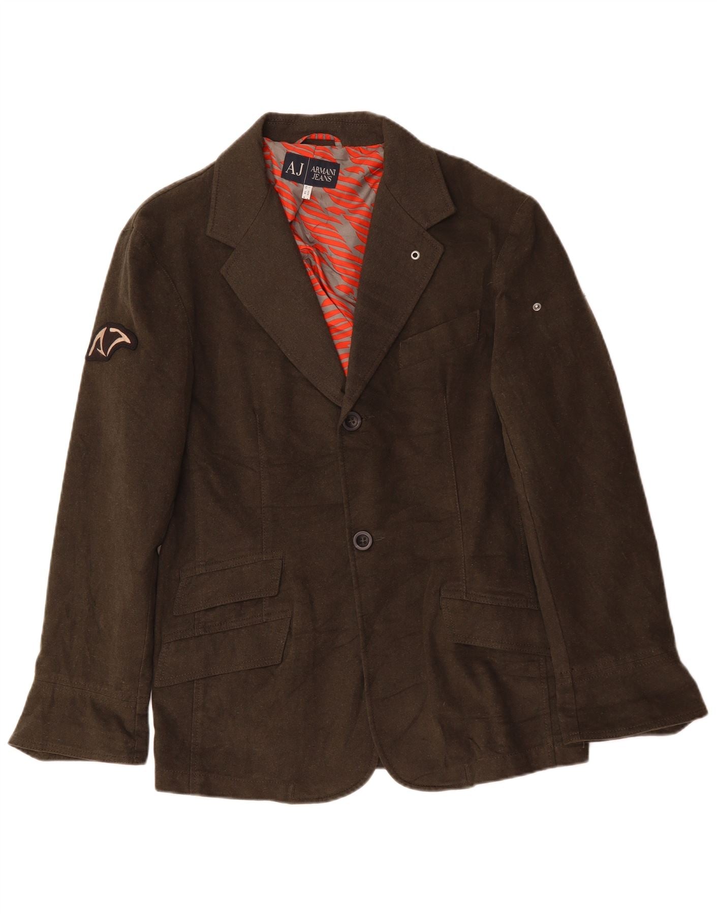 ARMANI JEANS Giacca blazer da uomo a 2 bottoni IT 52 Large in cotone kaki