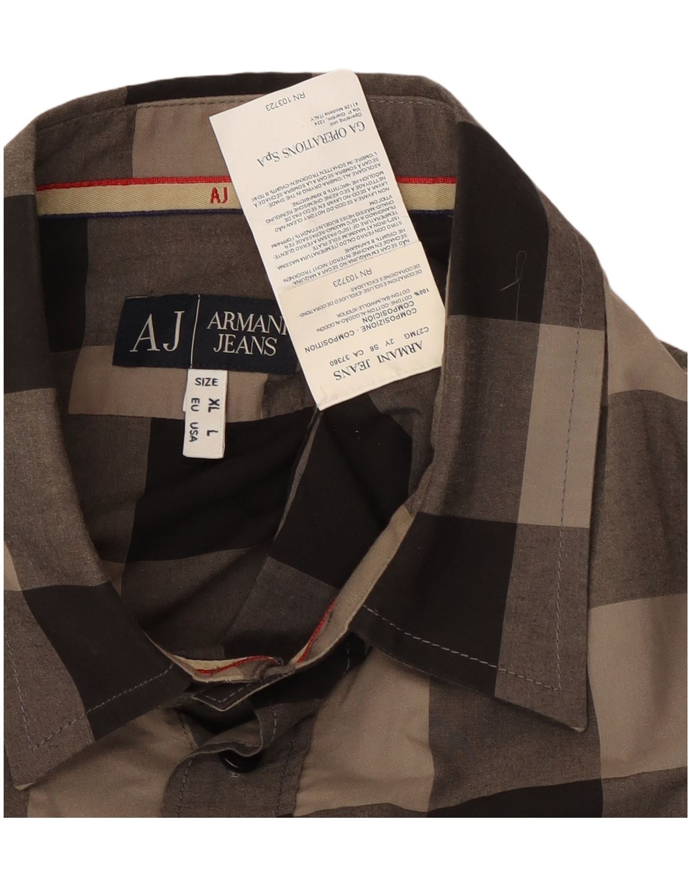 Camicia da uomo Armani Jeans grande in cotone a quadretti grigio