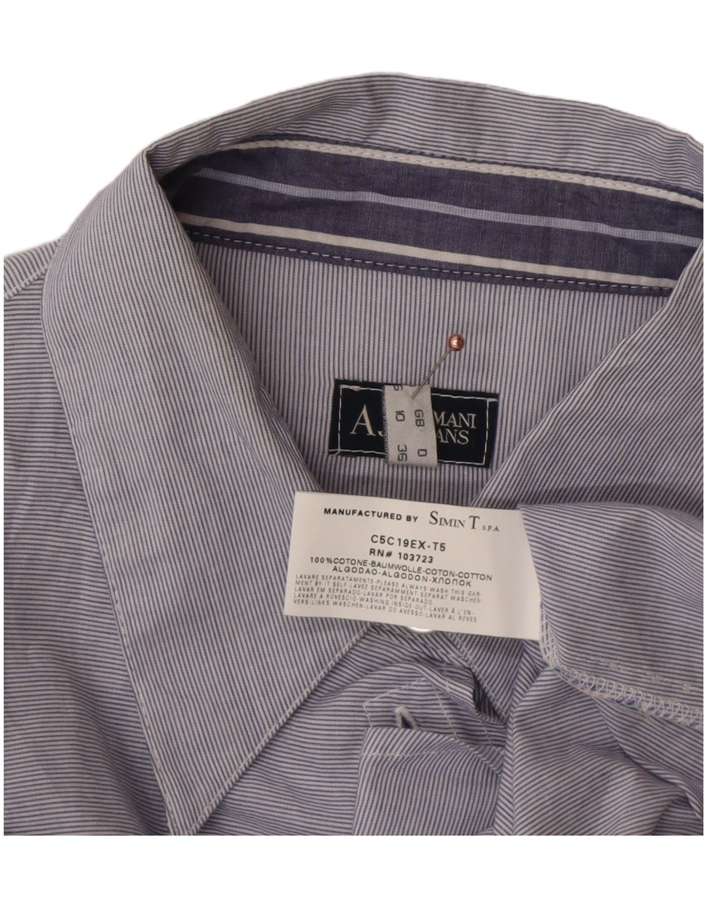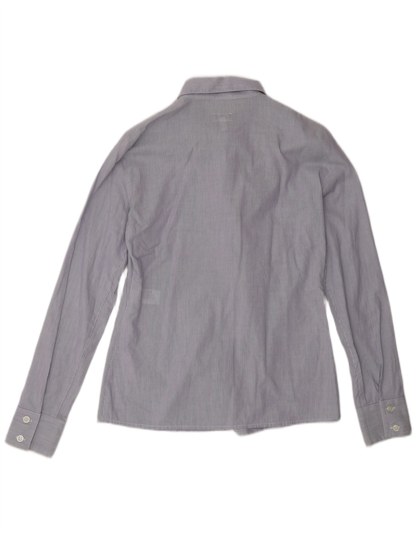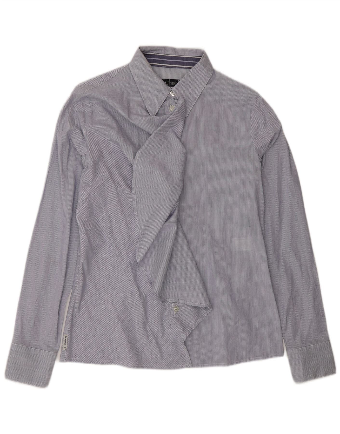 ARMANI JEANS Womens Ruffle Front Shirt UK 10 Small Blue Pinstripe Cotton