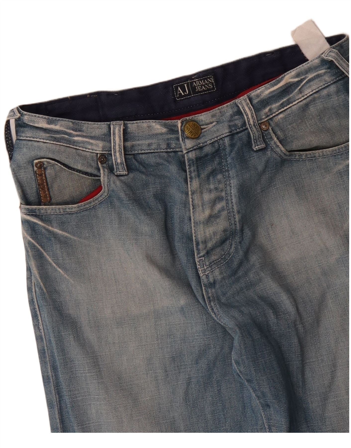 ARMANI Jeans dritti da uomo con grafica invecchiata W29 L31 Blu