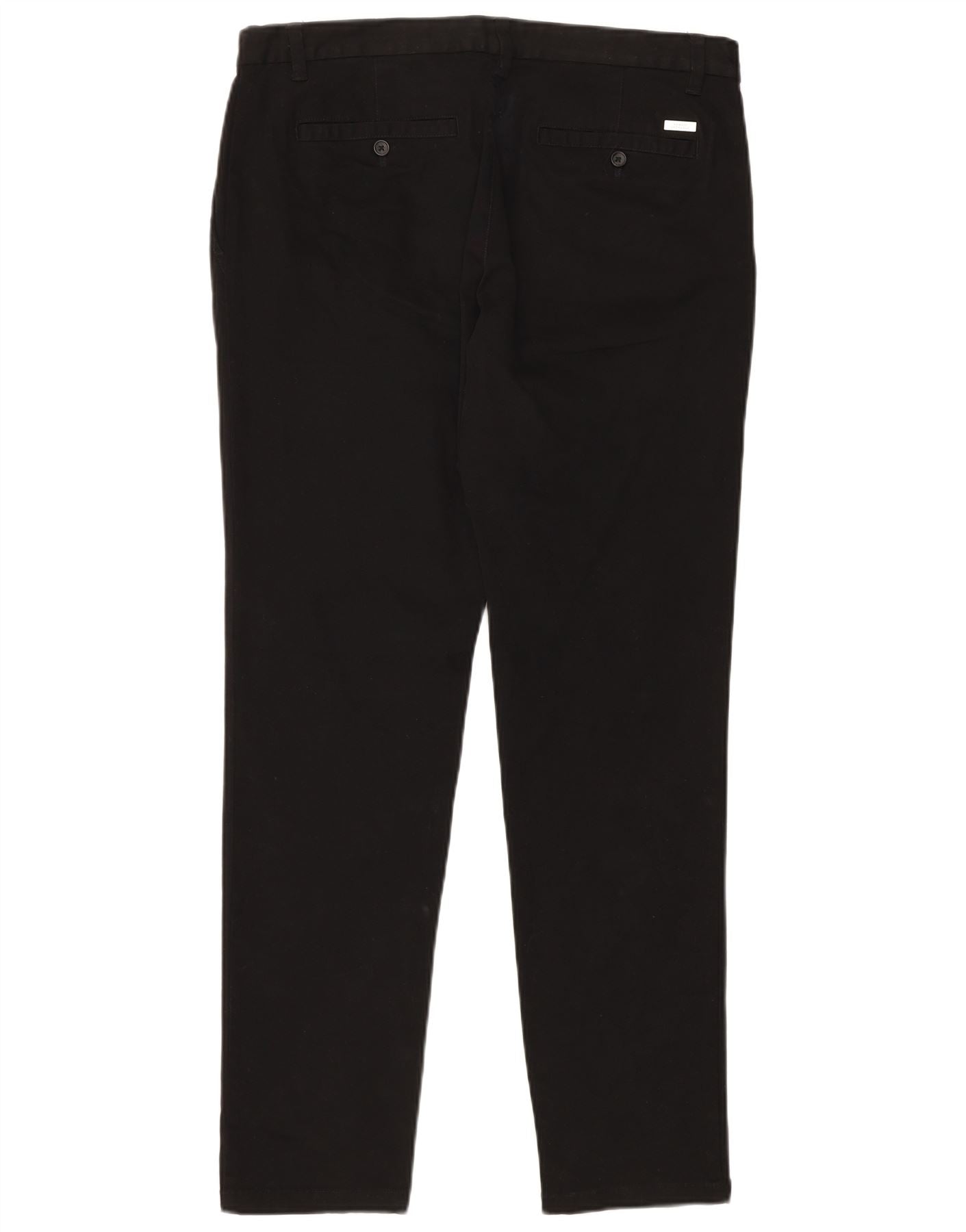 - AI Description: These Armani Exchange mens chino trousers are crafted from a black woven cotton blend with stretch. They feature a slim fit through the leg, tapering neatly to the ankle. A button closure secures the waist. Practical pockets are included. A subtle logo accent adds a signature touch. The classic style offers a smart yet comfortable look.