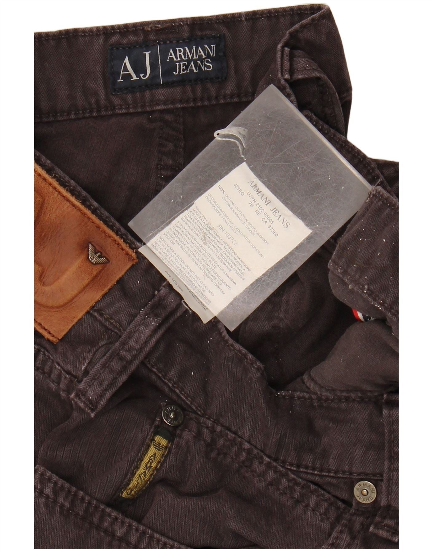 ARMANI Mens Straight Casual Trousers W33 L34 Brown Chevron Cotton