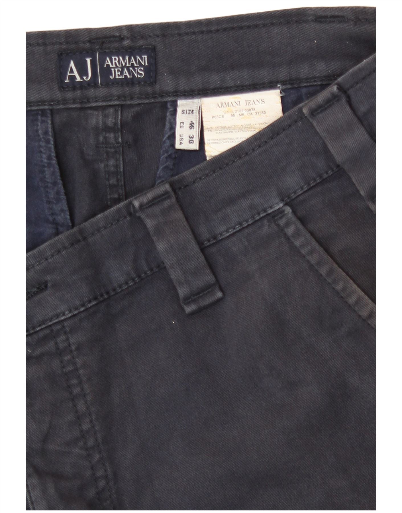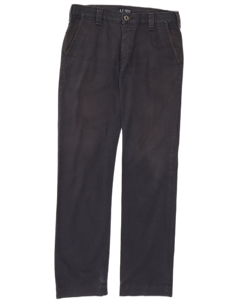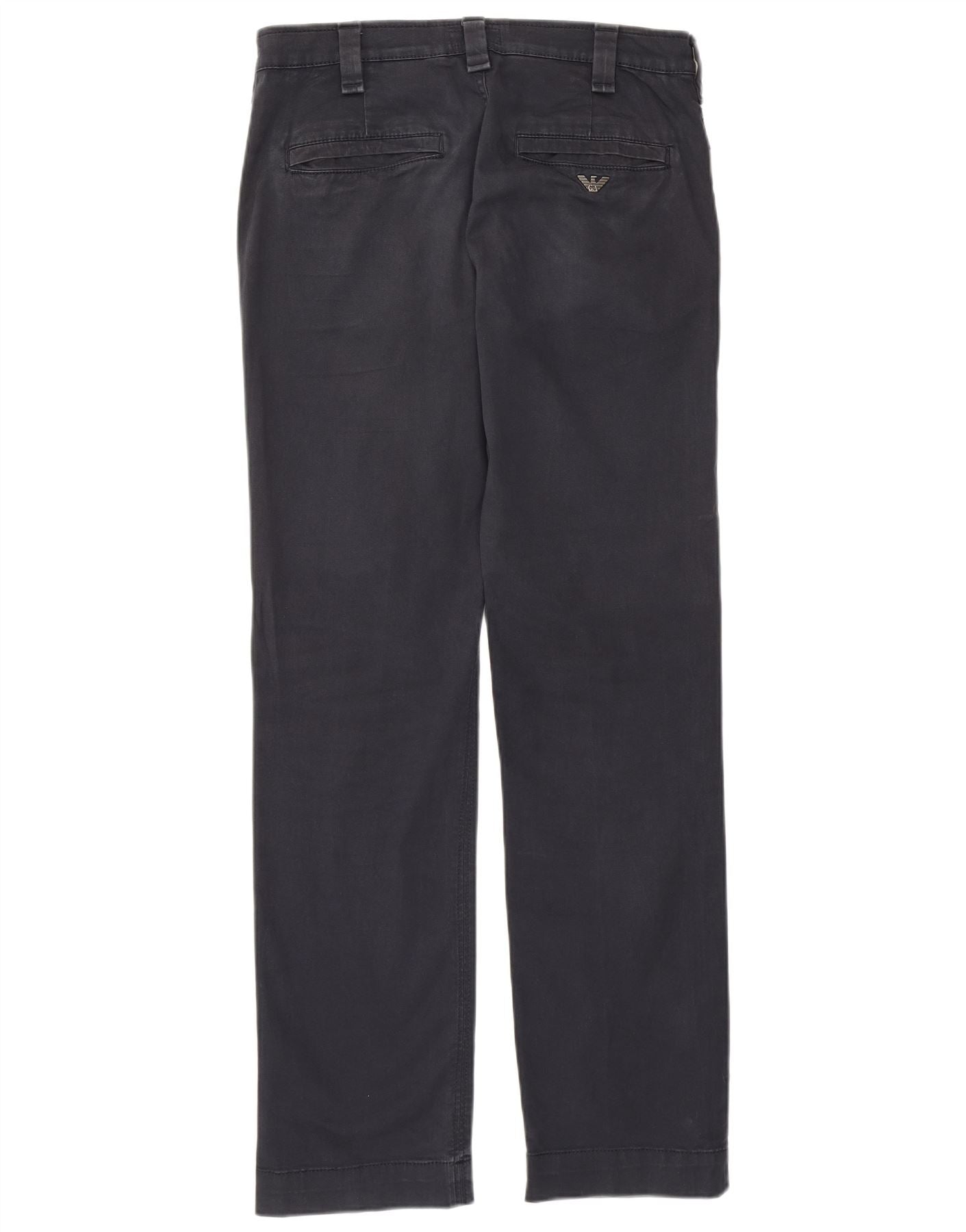 ARMANI Mens Straight Chino Trousers EU 46 Small W30 L32 Navy Blue Cotton