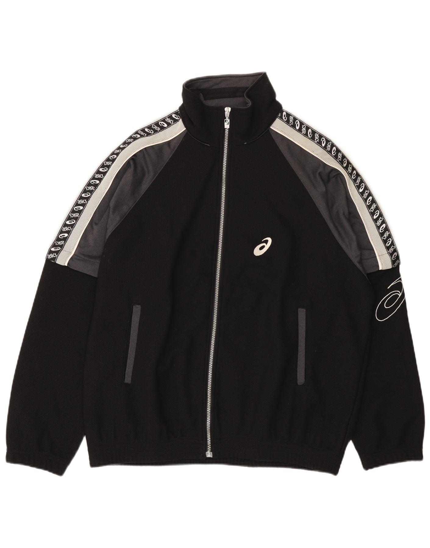 Home > Abbigliamento Asics vintage > Abbigliamento Asics vintage da uomo > Top della tuta > Asics - Giacca da uomo con grafica grafica, giacca grande, color block nero