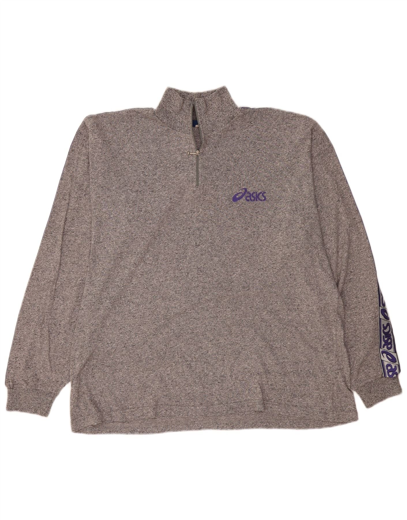 Top ASICS da uomo con zip e collo grafico a maniche lunghe 2XL Grigio