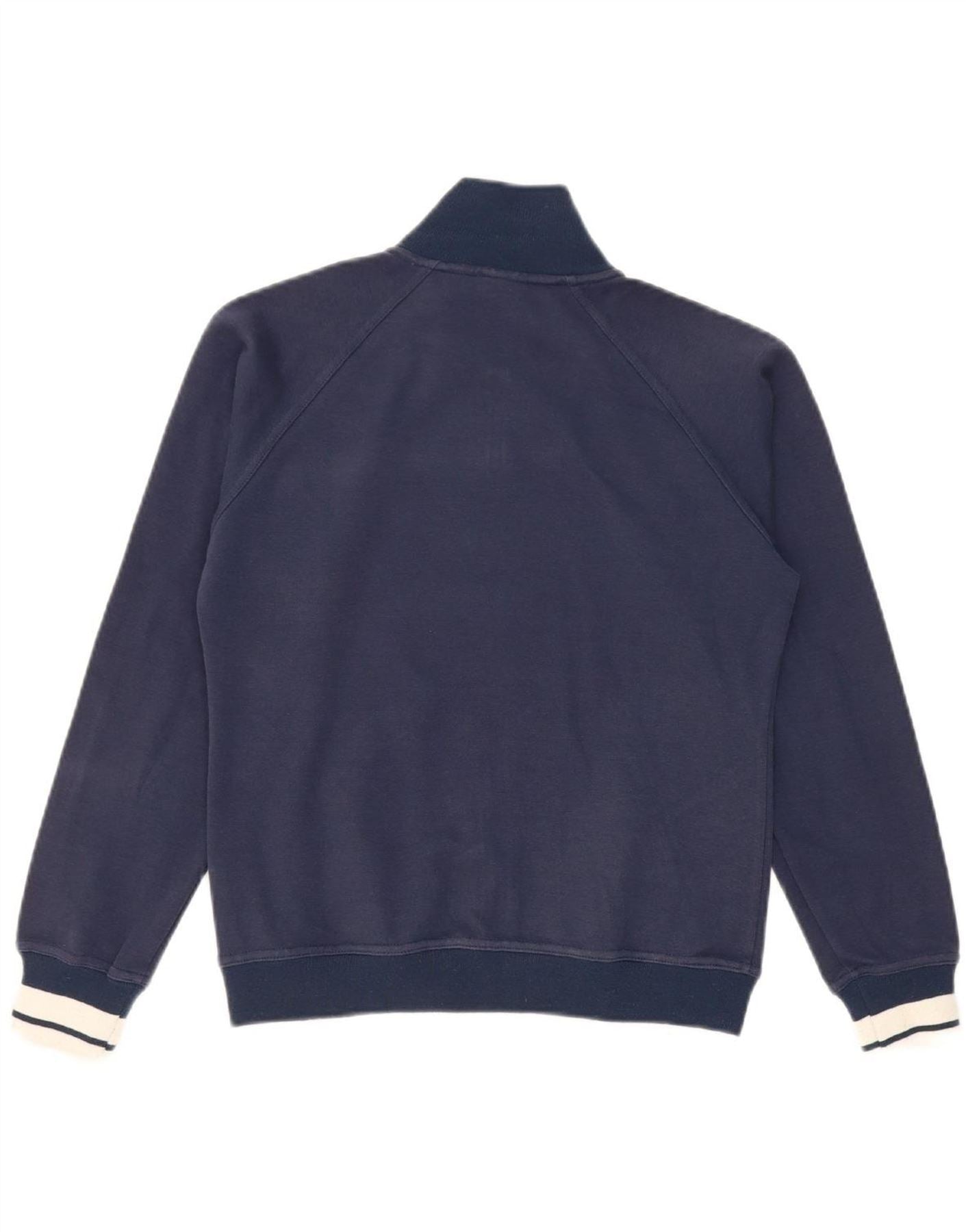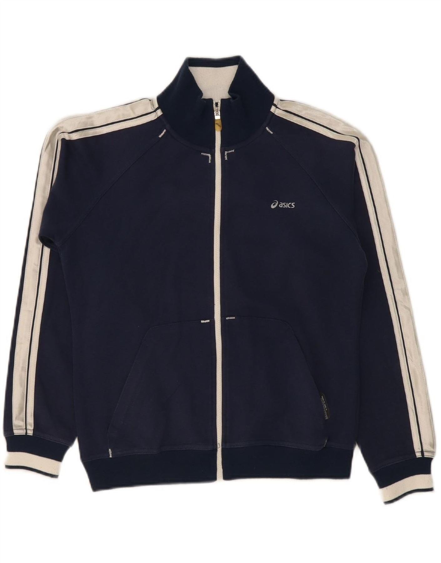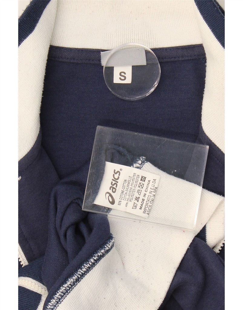 ASICS Womens Tracksuit Top Jacket UK 10 Small Navy Blue Colourblock Cotton