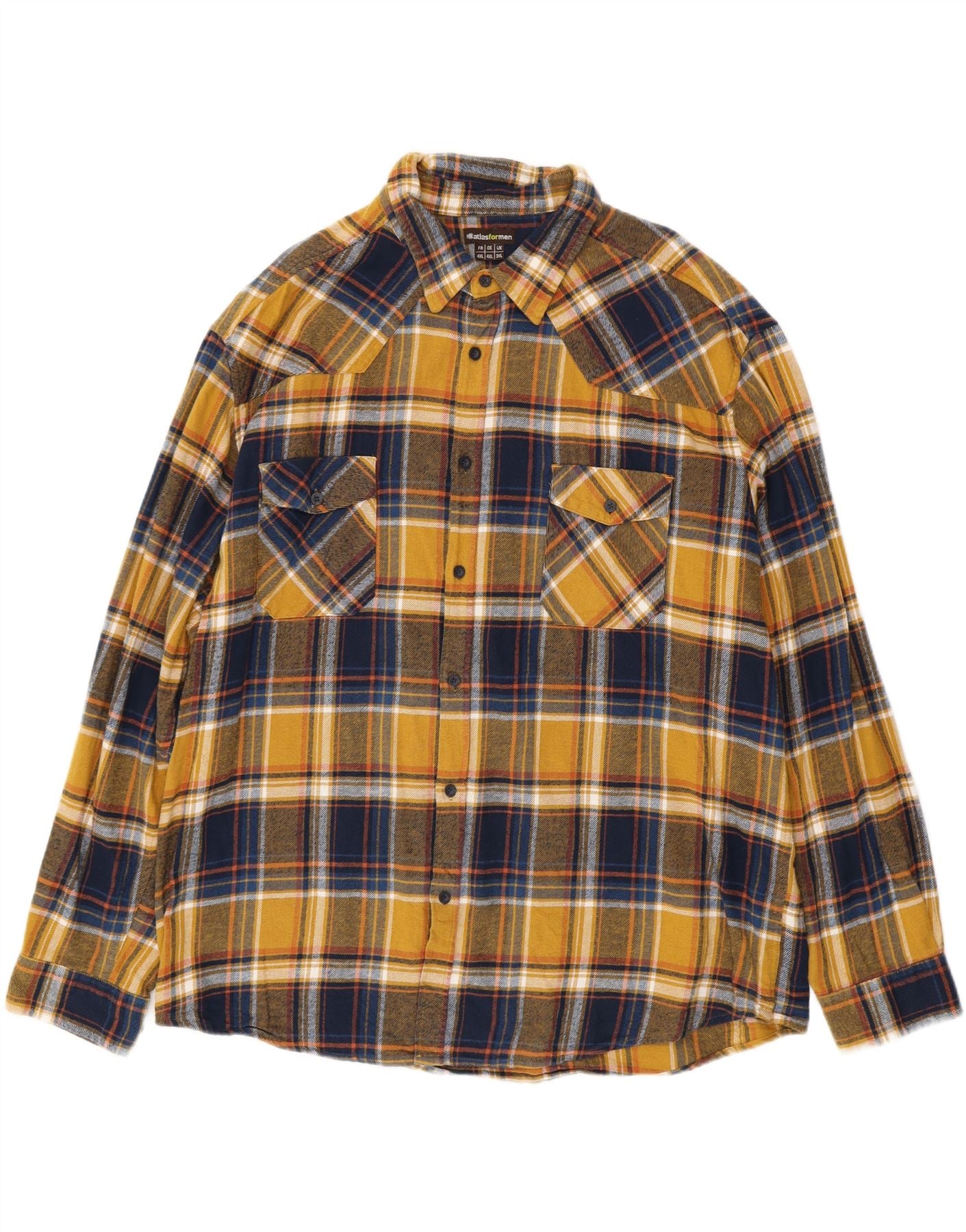 ATLAS FOR MEN Camicia da uomo in flanella 3XL cotone a quadri gialli