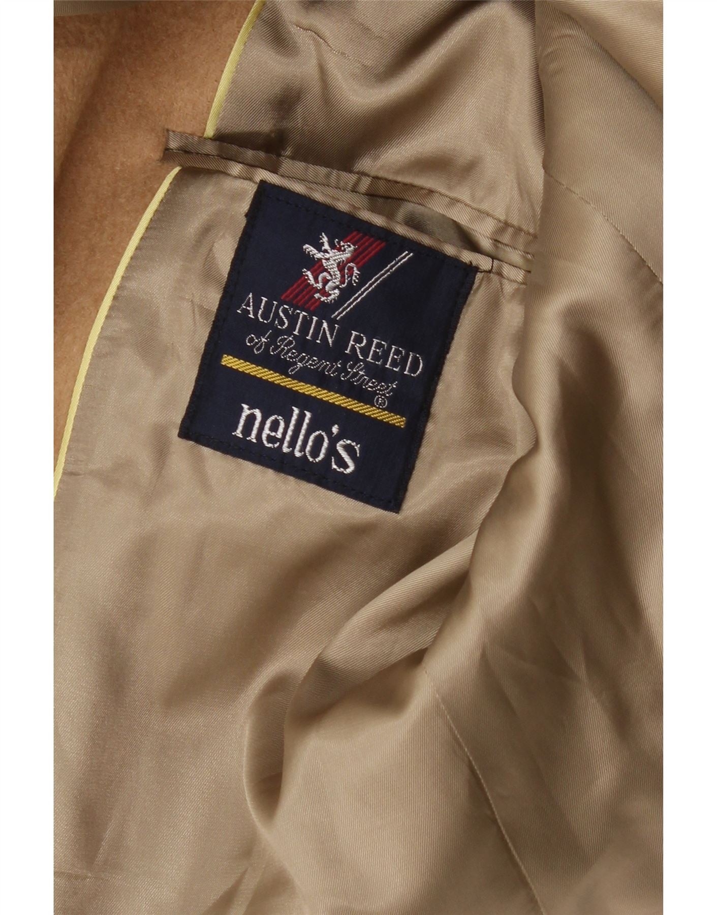 - AI Description: This is a pre-owned Austin Reed men's blazer jacket in brown tweed. A classic style with a regular fit and long sleeves. Features include button closure, pockets, shoulder pads and full lining. This item has minor visible wear overall. Perfect for a smart casual look.