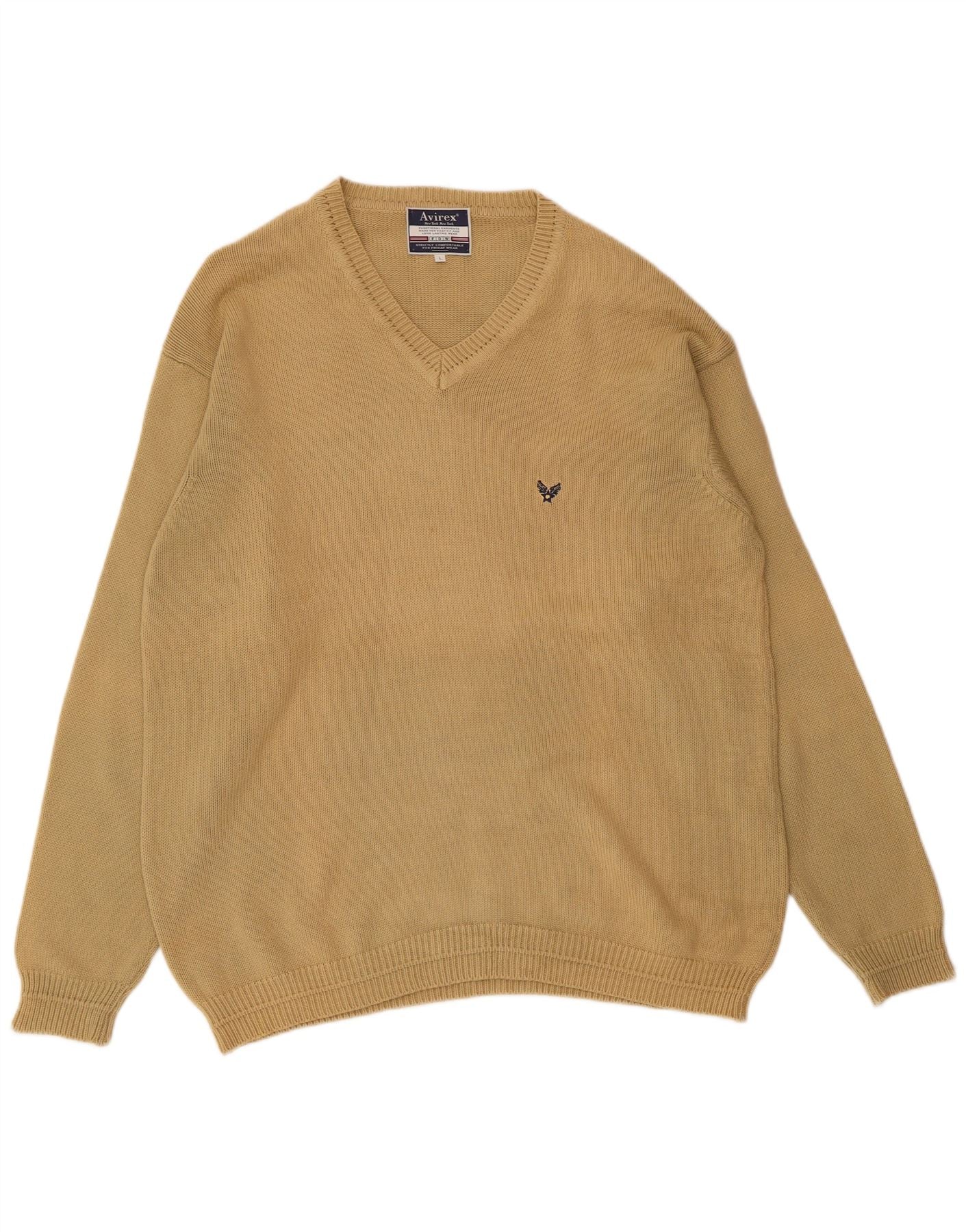Home > Abbigliamento Avirex vintage > Uomo > Maglione da uomo con scollo a V Avirex grande in cotone beige