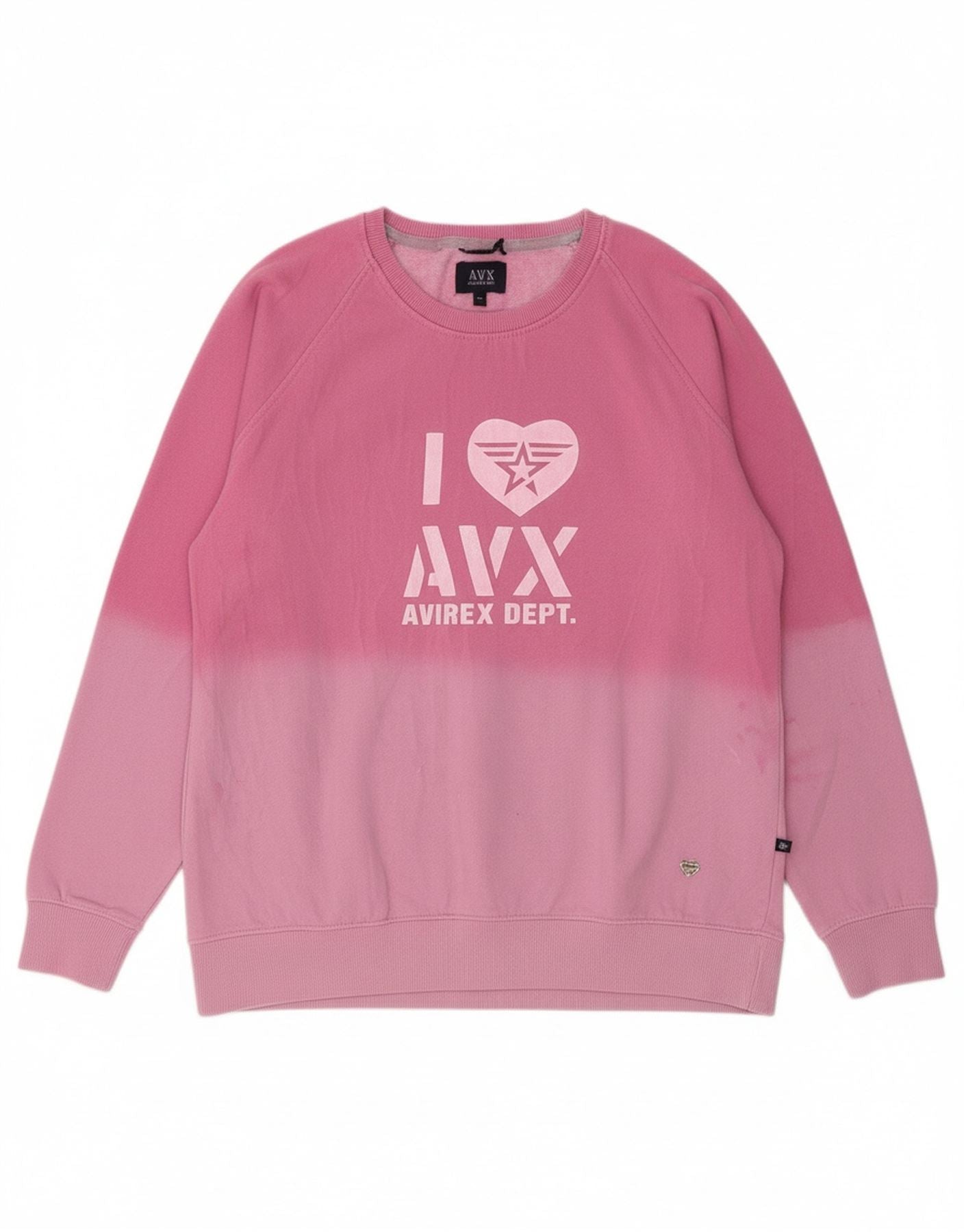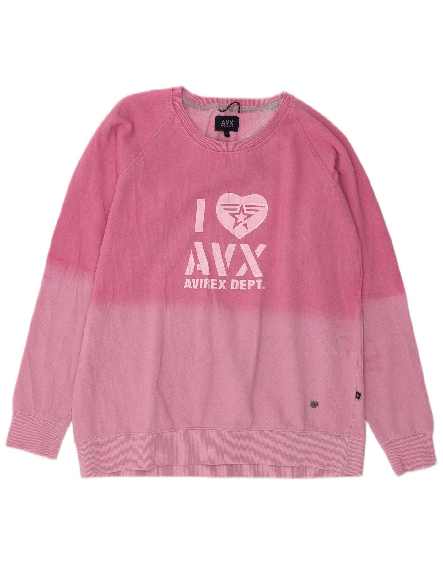 AVIREX Womens Graphic Sweatshirt Jumper UK 18 XL Pink Colourblock Cotton