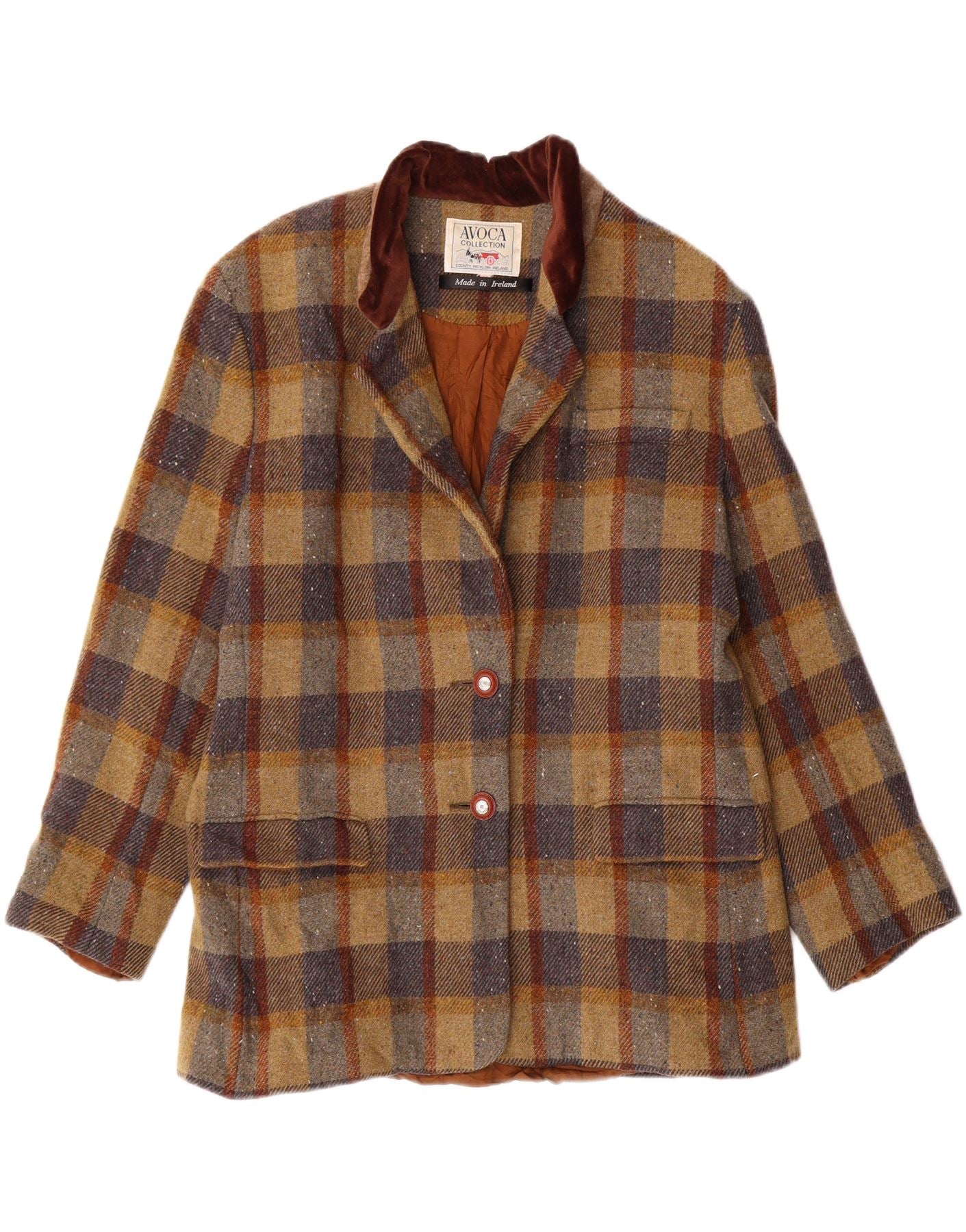 AVOCA Womens 2 Button 3/4 Sleeve Blazer Jacket UK 14 Medium Brown Check