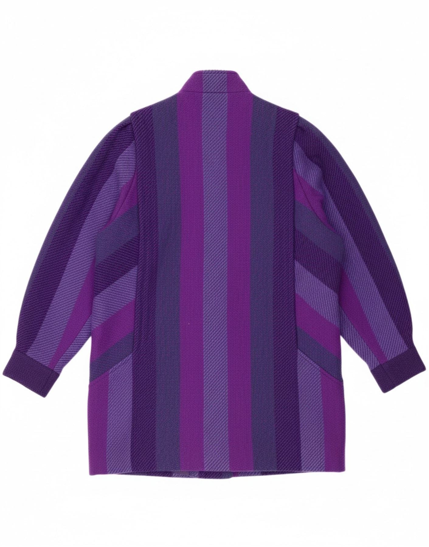 - AI Description: This Avoca women’s jacket is crafted from luxurious pure new wool in a rich multicoloured stripe weave. It features a collared neckline and long batwing sleeves, offering a distinctive, relaxed silhouette. The button closure adds a classic finish, complementing the bold striped pattern. With a comfortable relaxed fit, this piece includes practical pockets and a full viscose lining, ensuring both style and warmth.