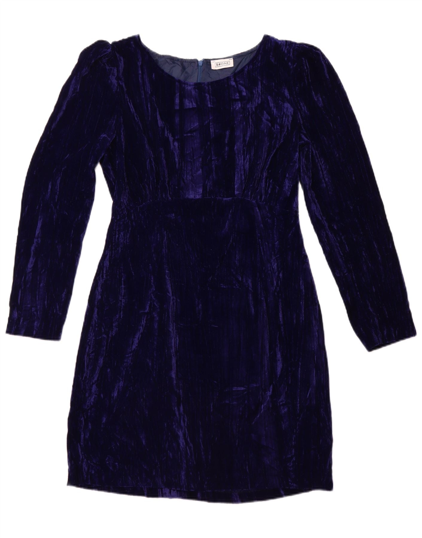 B.ONE Abito tubino in velluto a maniche lunghe da donna UK 14 Grande poliestere blu