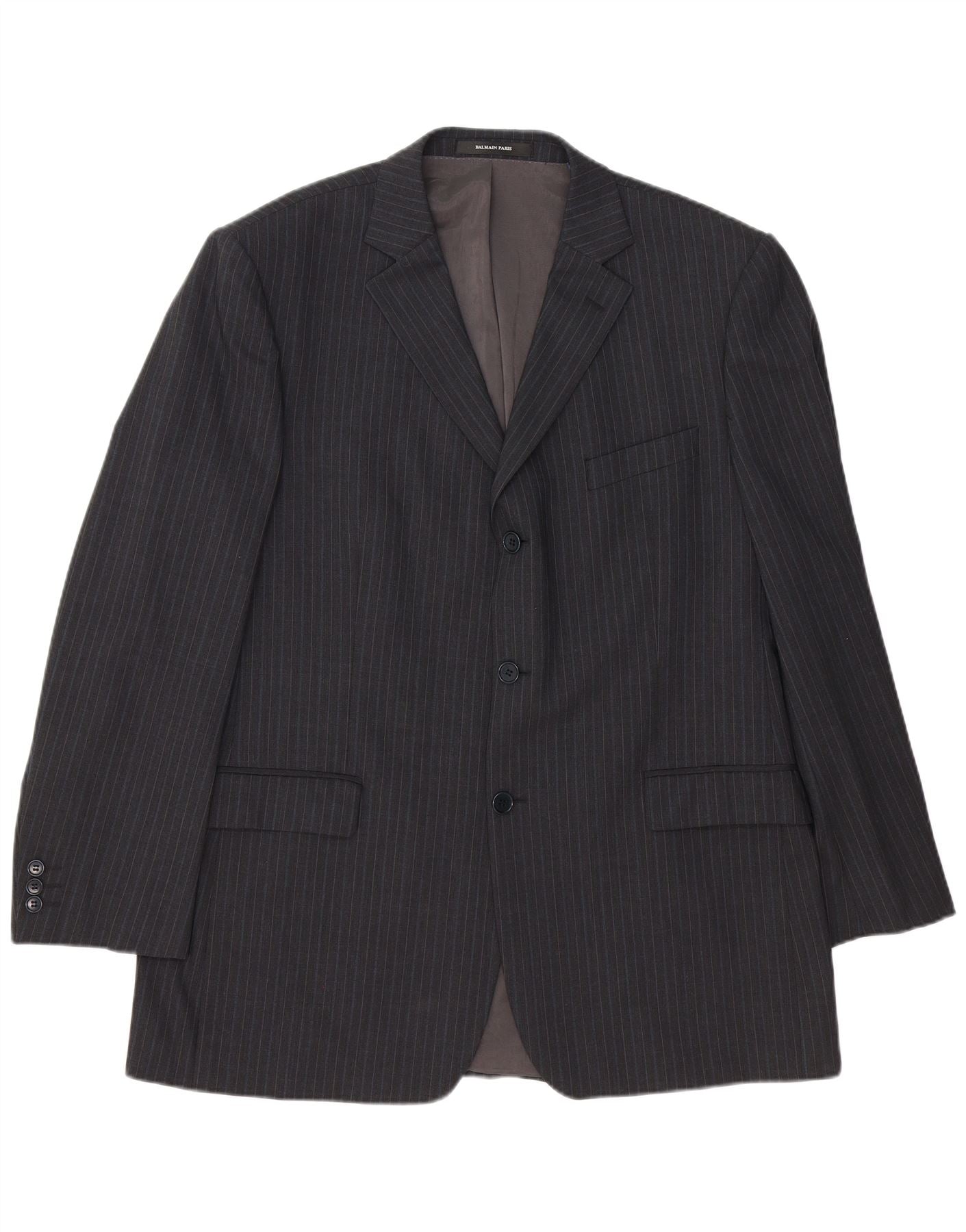 BALMAIN Mens Paris 3 Button Blazer Jacket UK 44 2XL Grey Pinstripe