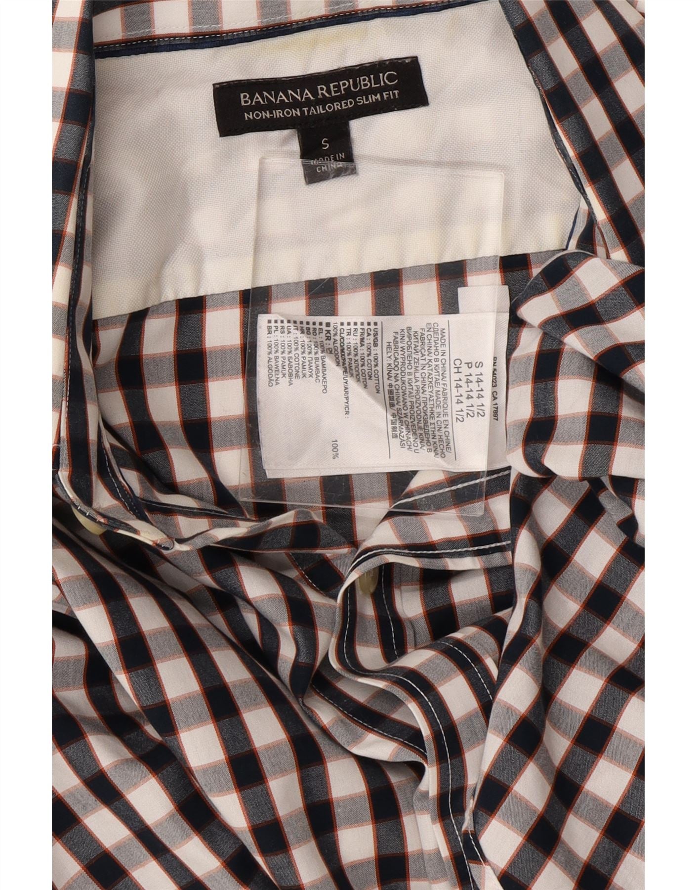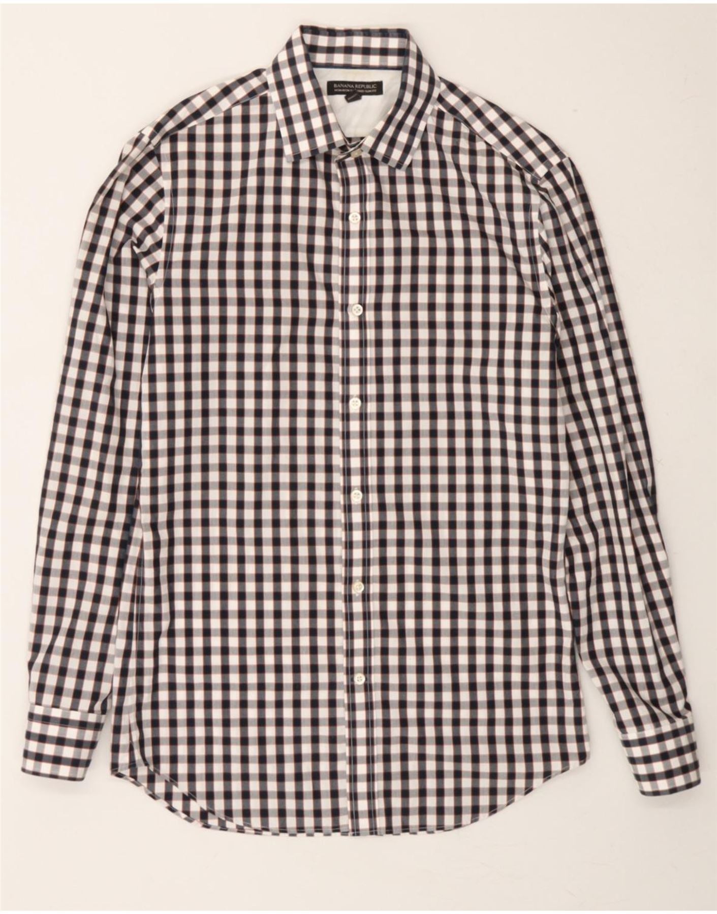 BANANA REPUBLIC Mens Shirt Size 14 1/2 Small Black Check Cotton