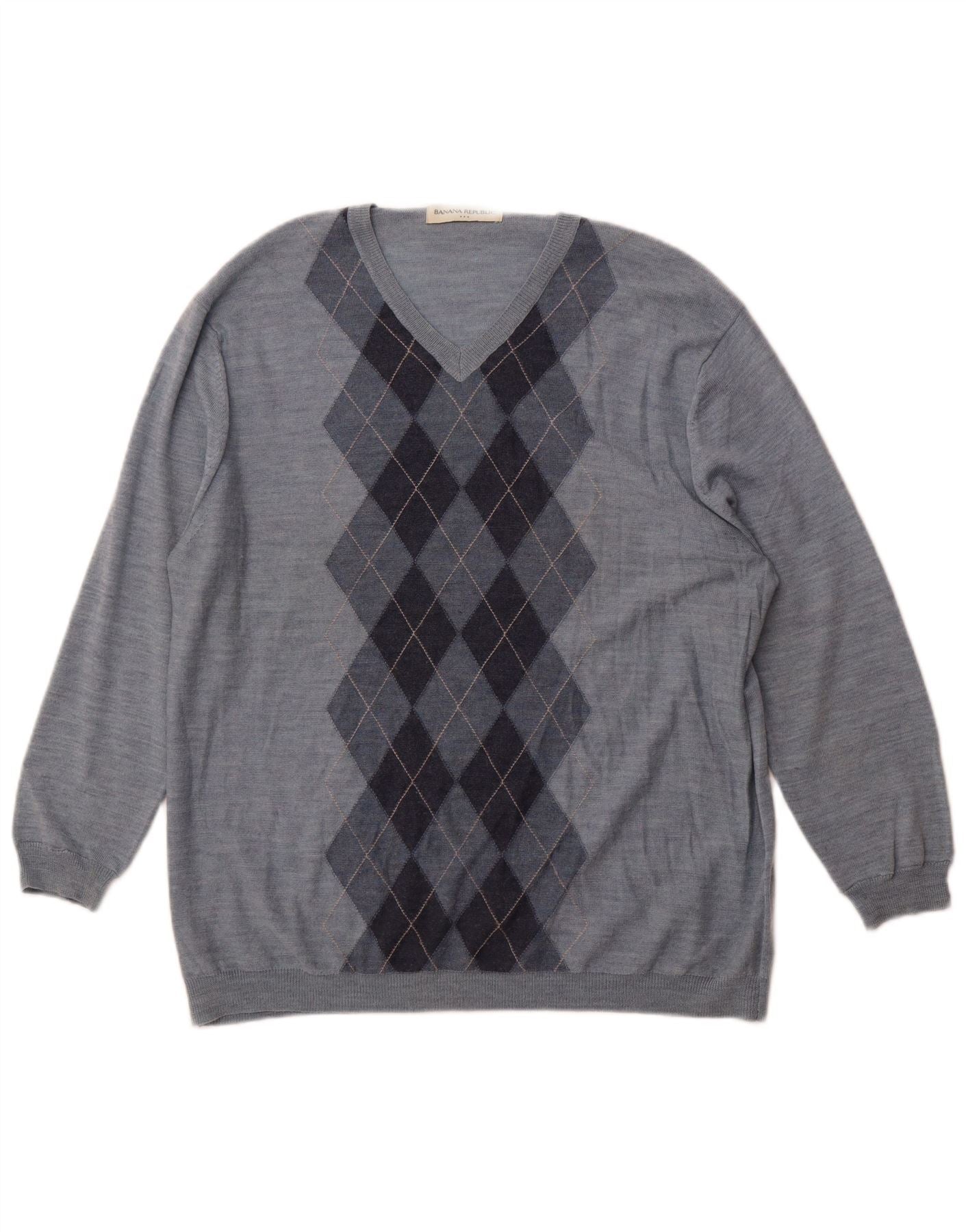 BANANA REPUBLIC Mens V-Neck Jumper Sweater Large Blue Argyle/Diamond