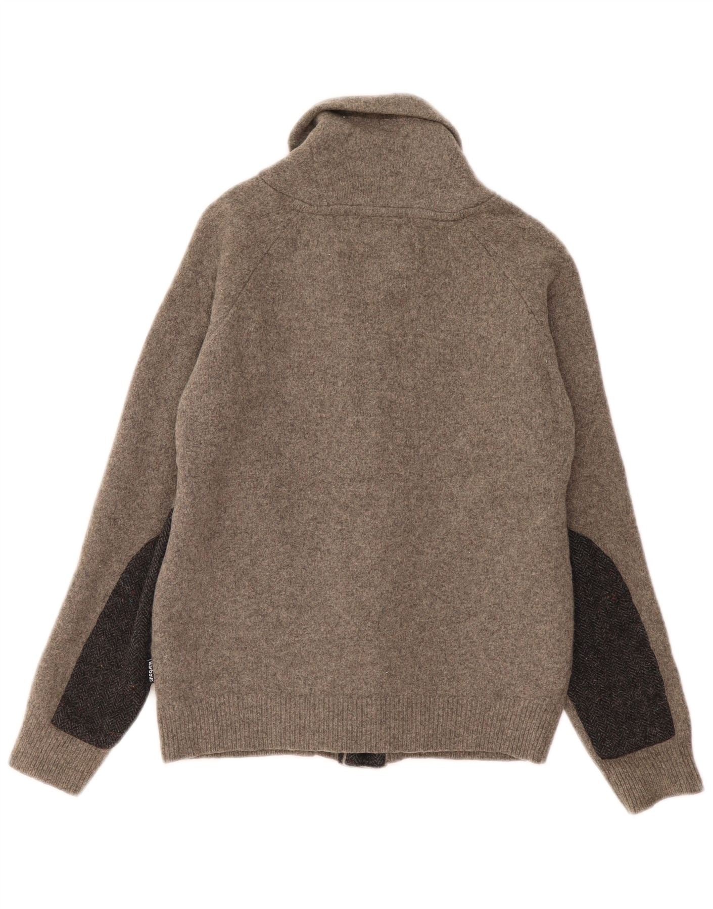 Maglione cardigan per ragazzi BARBOUR 11-12 anni grande in lana color block grigio