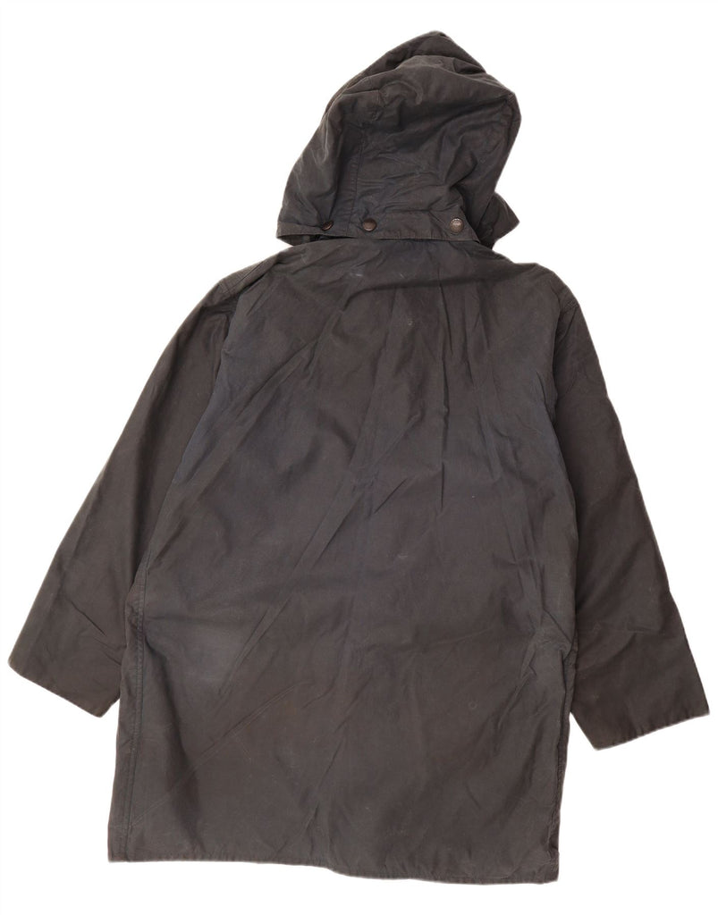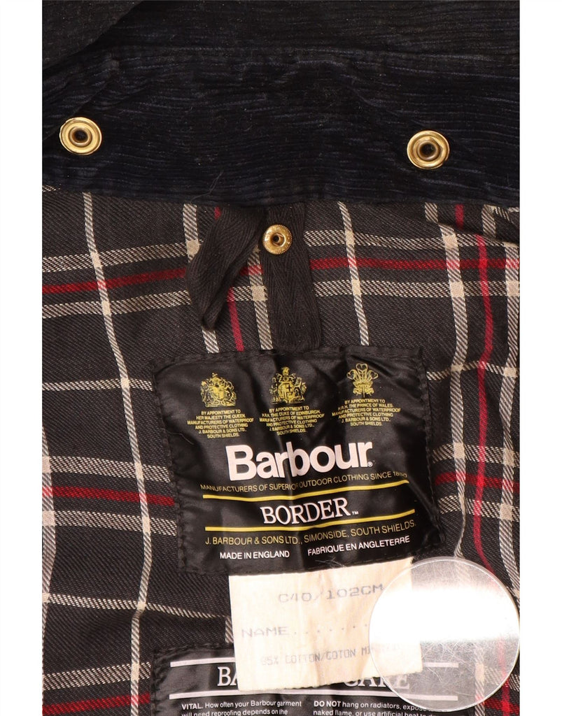 BARBOUR Mens Border Hooded Waxed Jacket UK 40 Medium Navy Blue Cotton