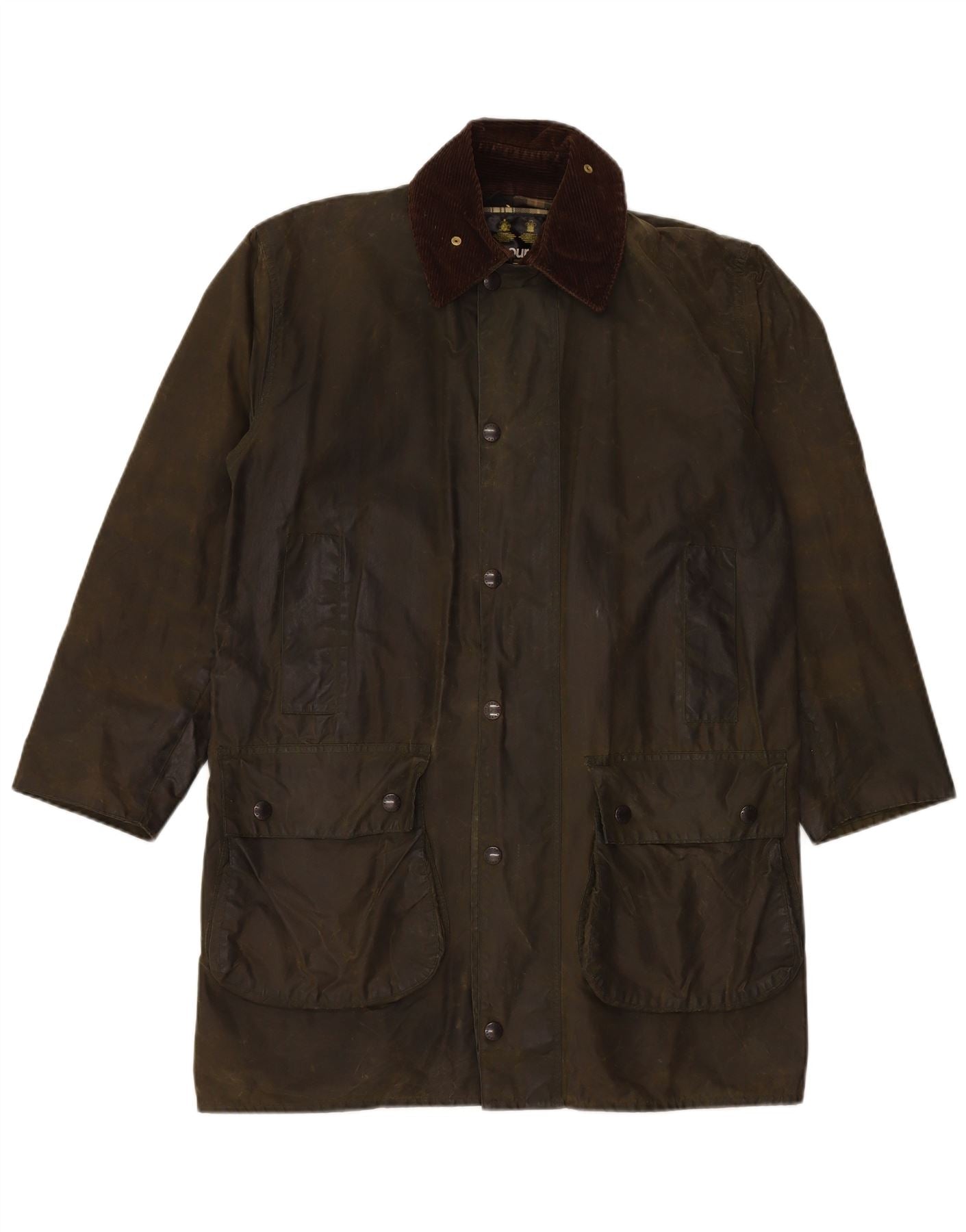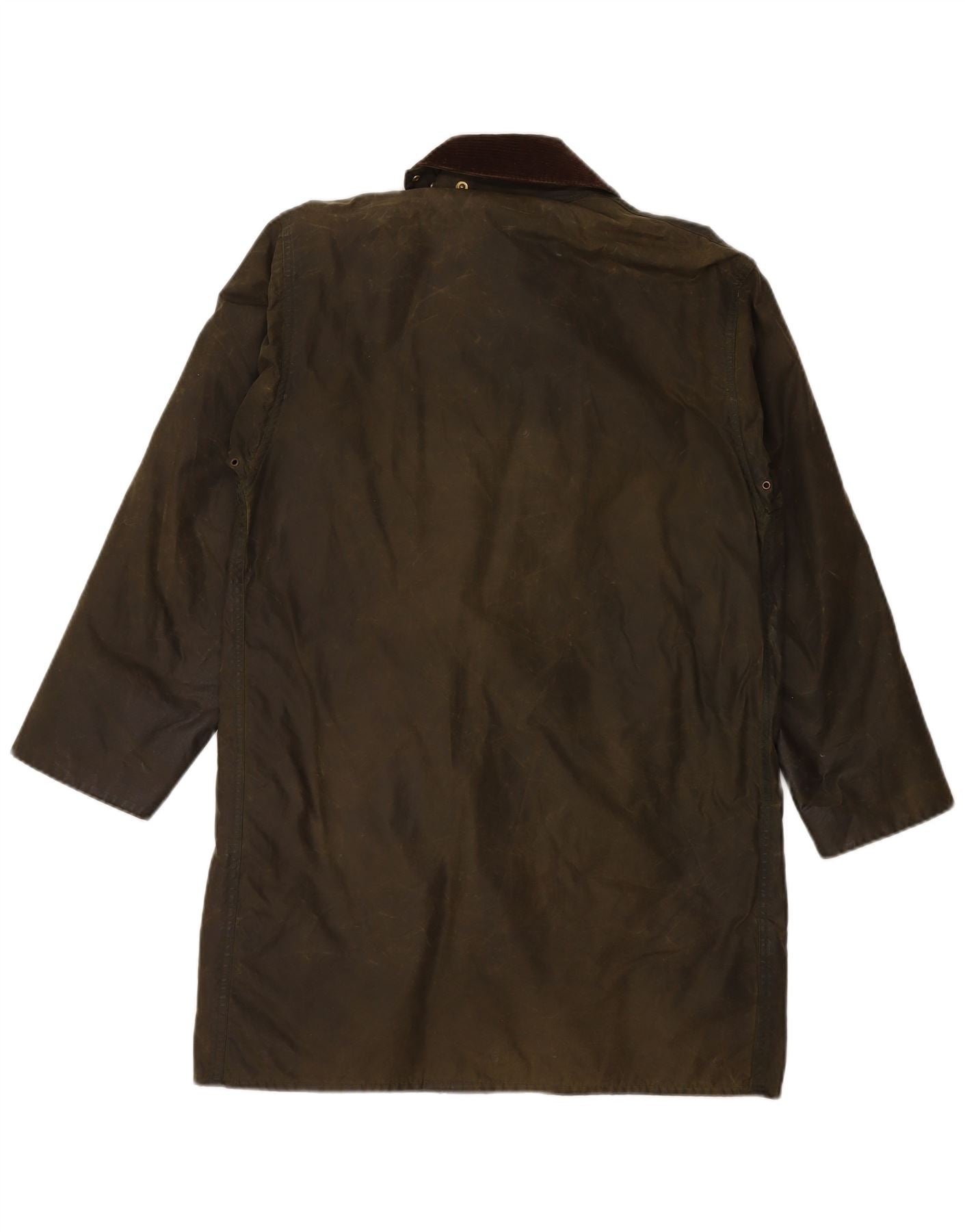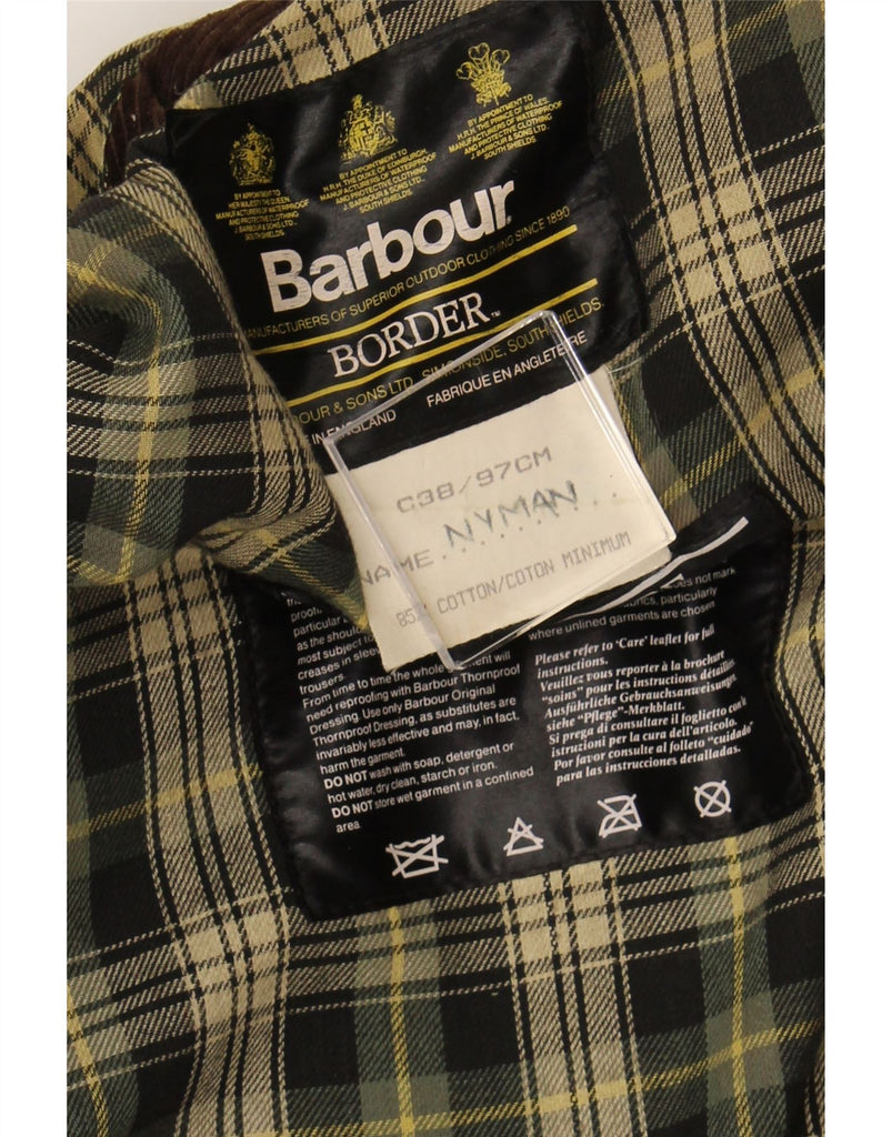 BARBOUR Mens Border Waxed Cotton Overcoat UK 38 Medium Khaki Cotton