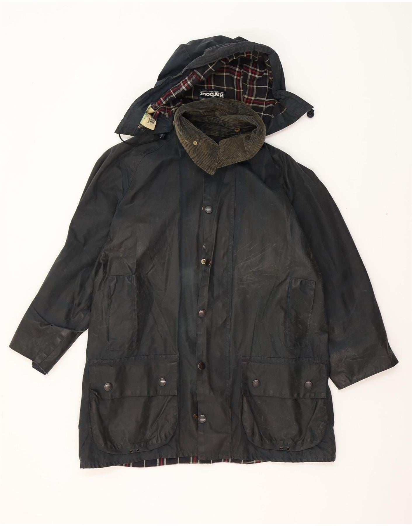 BARBOUR Mens Hooded Waxed Cotton Jacket Size 40 Medium Navy Blue
