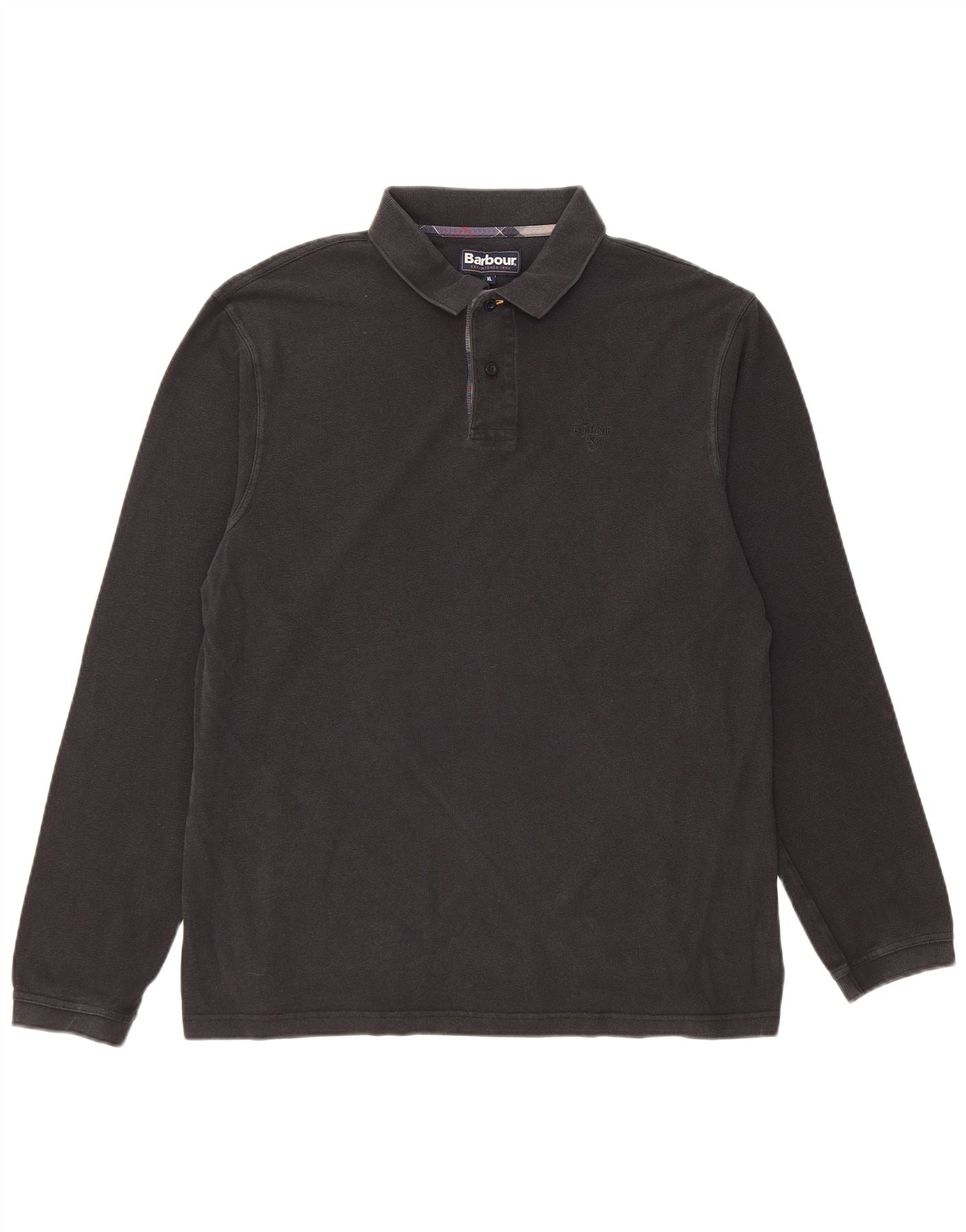 Polo da uomo a maniche lunghe BARBOUR XL in cotone nero