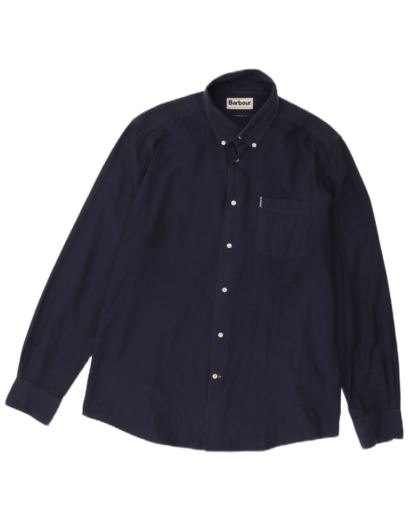 BARBOUR Camicia sartoriale da uomo grande in cotone blu navy