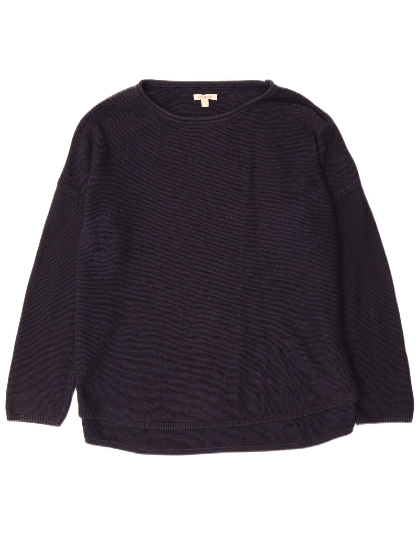 BARBOUR Womens Oversized Boat Neck Jumper Sweater UK 14 Large Navy Blue