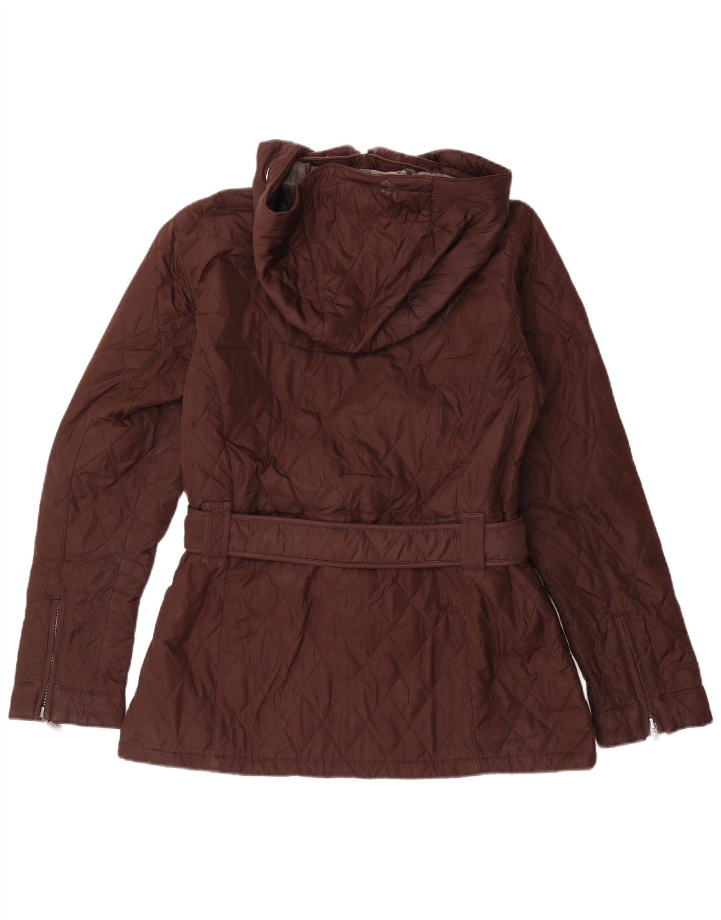 BARBOUR Giacca trapuntata con cappuccio scozzese invernale da donna UK 12 Marrone medio