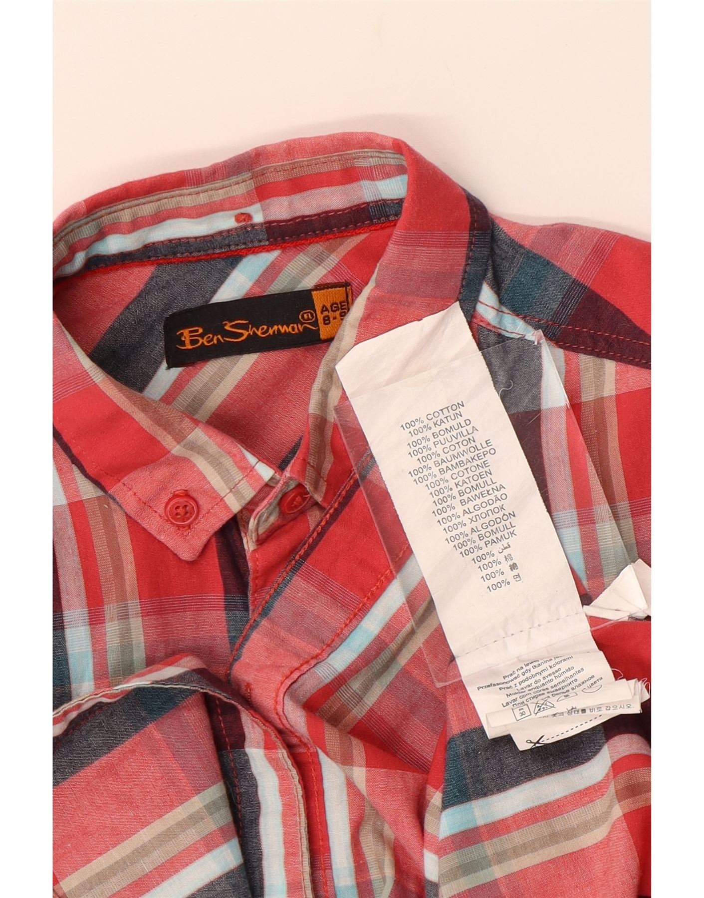 Camicia a maniche corte da bambino BEN SHERMAN 8-9 anni in cotone a quadri rossi