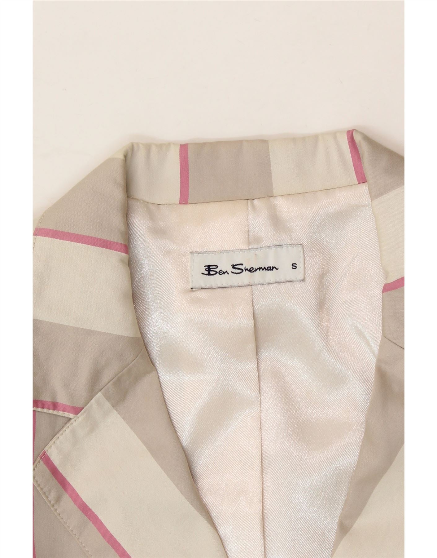 BEN SHERMAN Womens 2 Button Blazer Jacket UK 10 Small Beige Striped Cotton