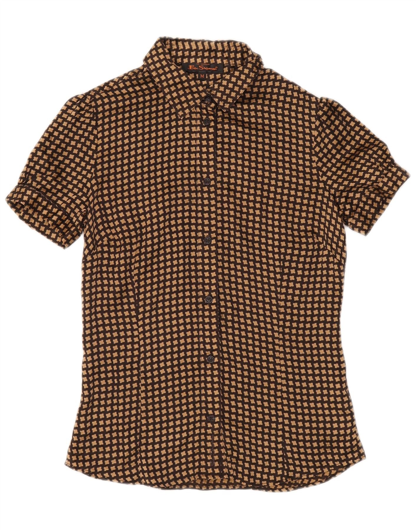 BEN SHERMAN Camicia da donna Camicetta UK 12 Pied de poule marrone medio