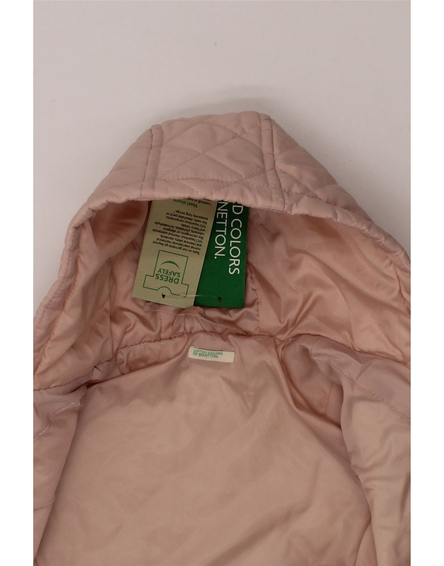 - AI Description: Introduce practicality and style to her wardrobe with this charming Benetton quilted jacket in a lovely pink hue. Crafted from woven fabric with a padded finish for warmth, this regular-fit jacket features a cosy hood and practical pockets. It boasts long sleeves and a simple snap closure for easy wear. A classic hooded design perfect for layering, complete with washing instructions for effortless care. Ideal for everyday adventures.