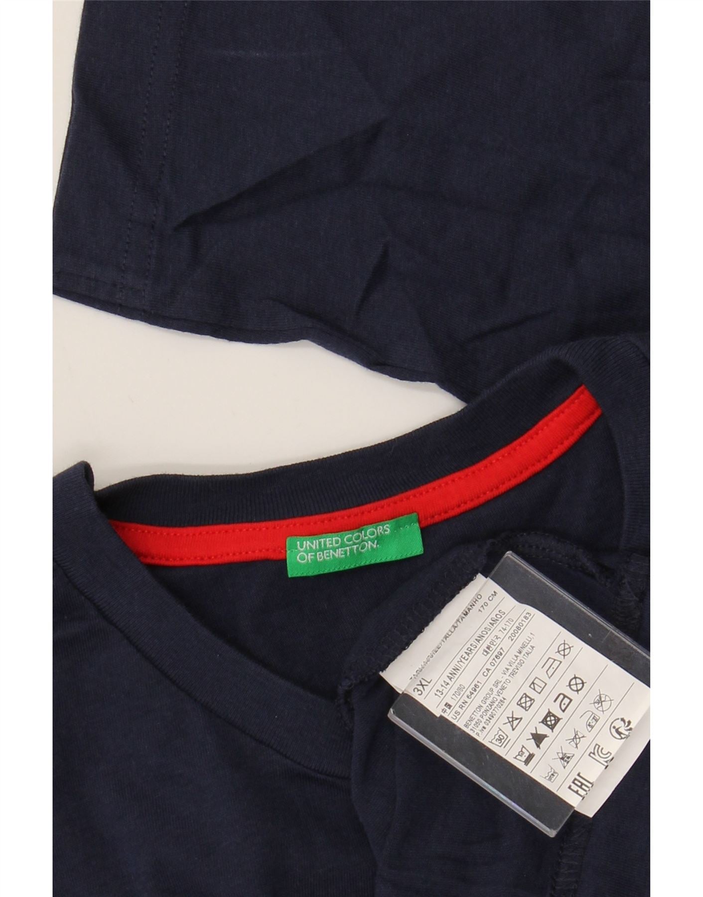 BENETTON Top grafico da bambino manica lunga 13-14 anni 3XL cotone blu navy