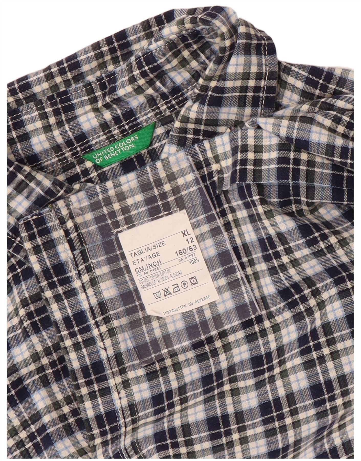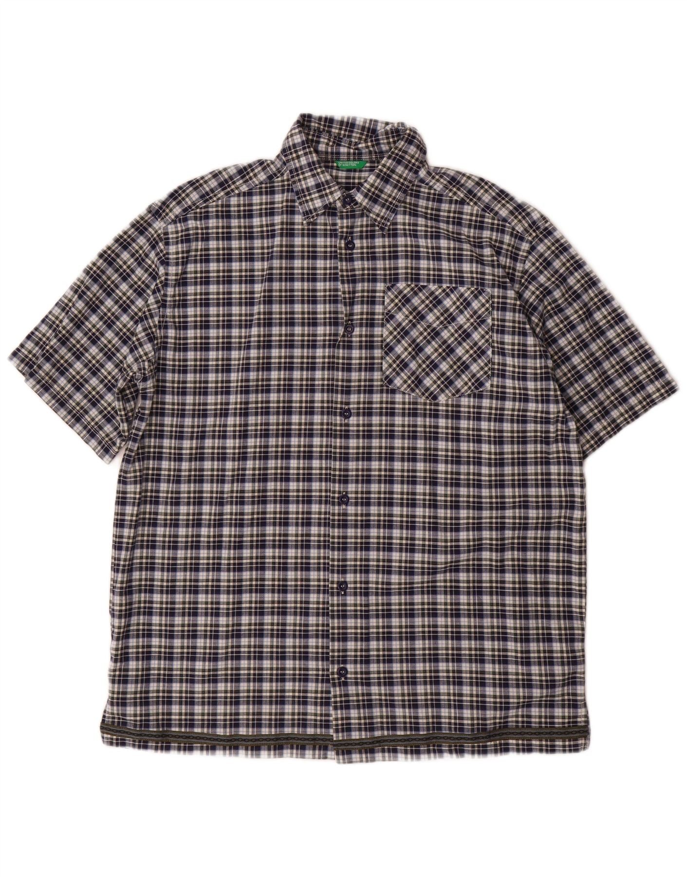 Camicia a maniche corte da bambino BENETTON 11-12 anni XL in cotone a quadri blu navy