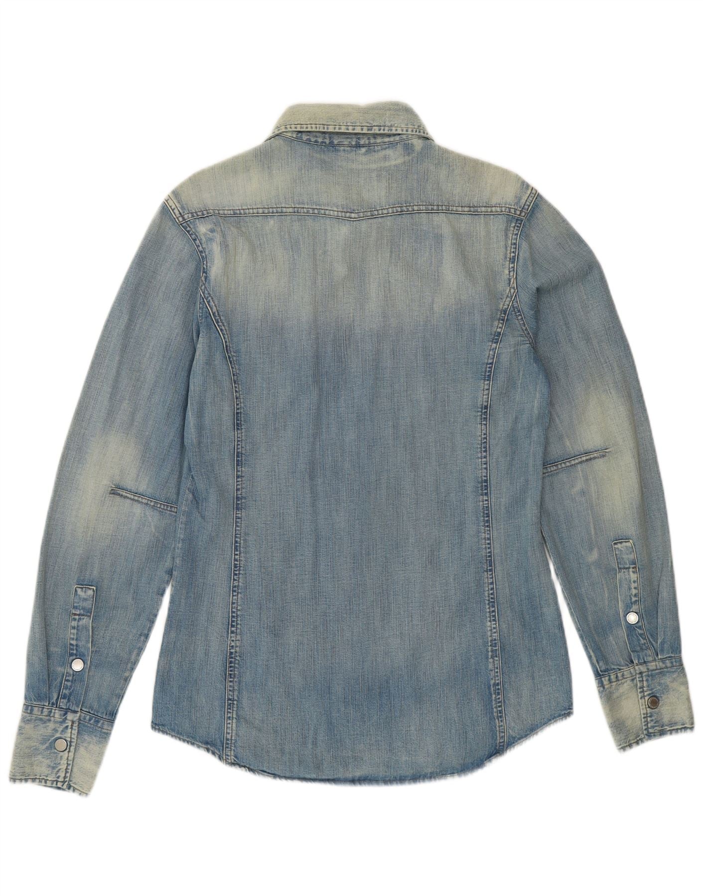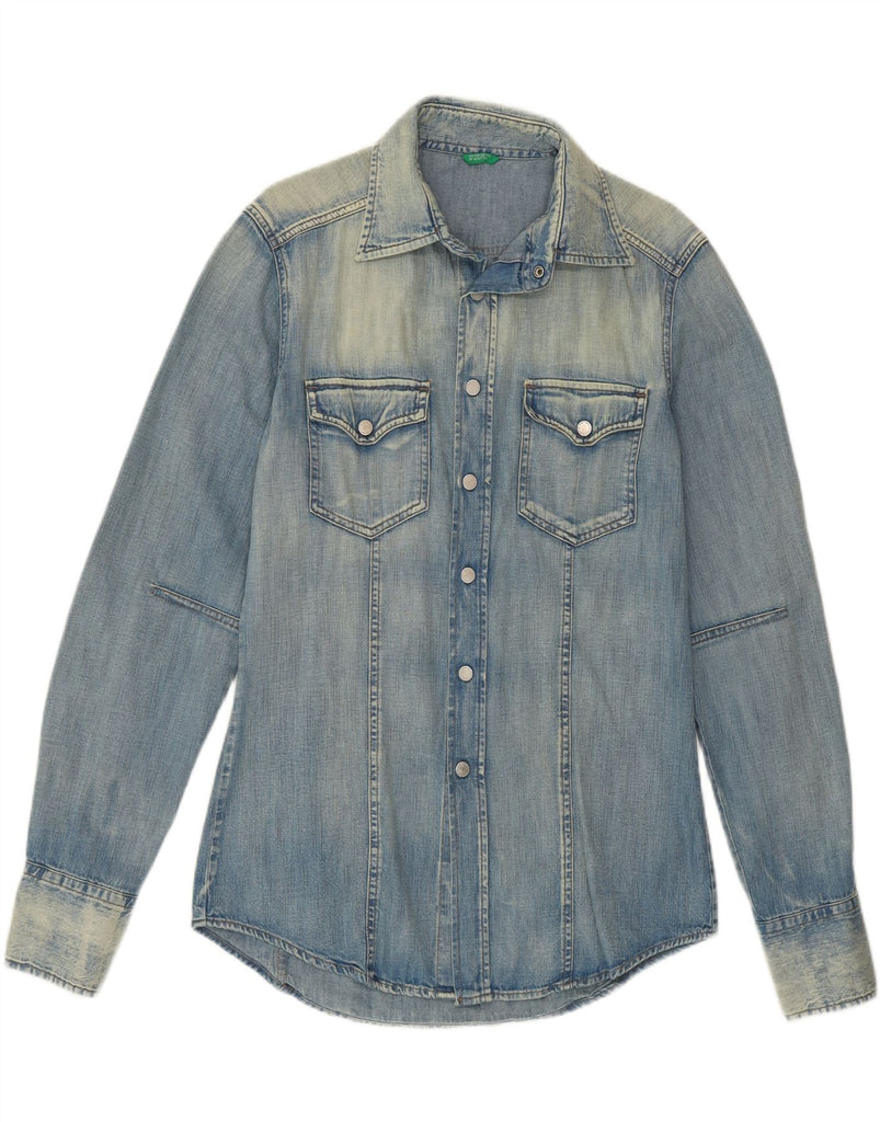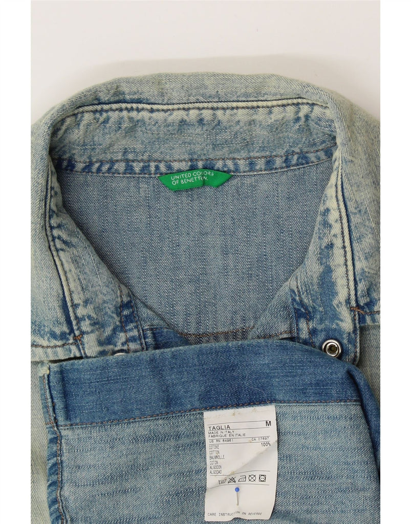 Camicia di jeans da uomo BENETTON lavaggio acido in cotone blu medio