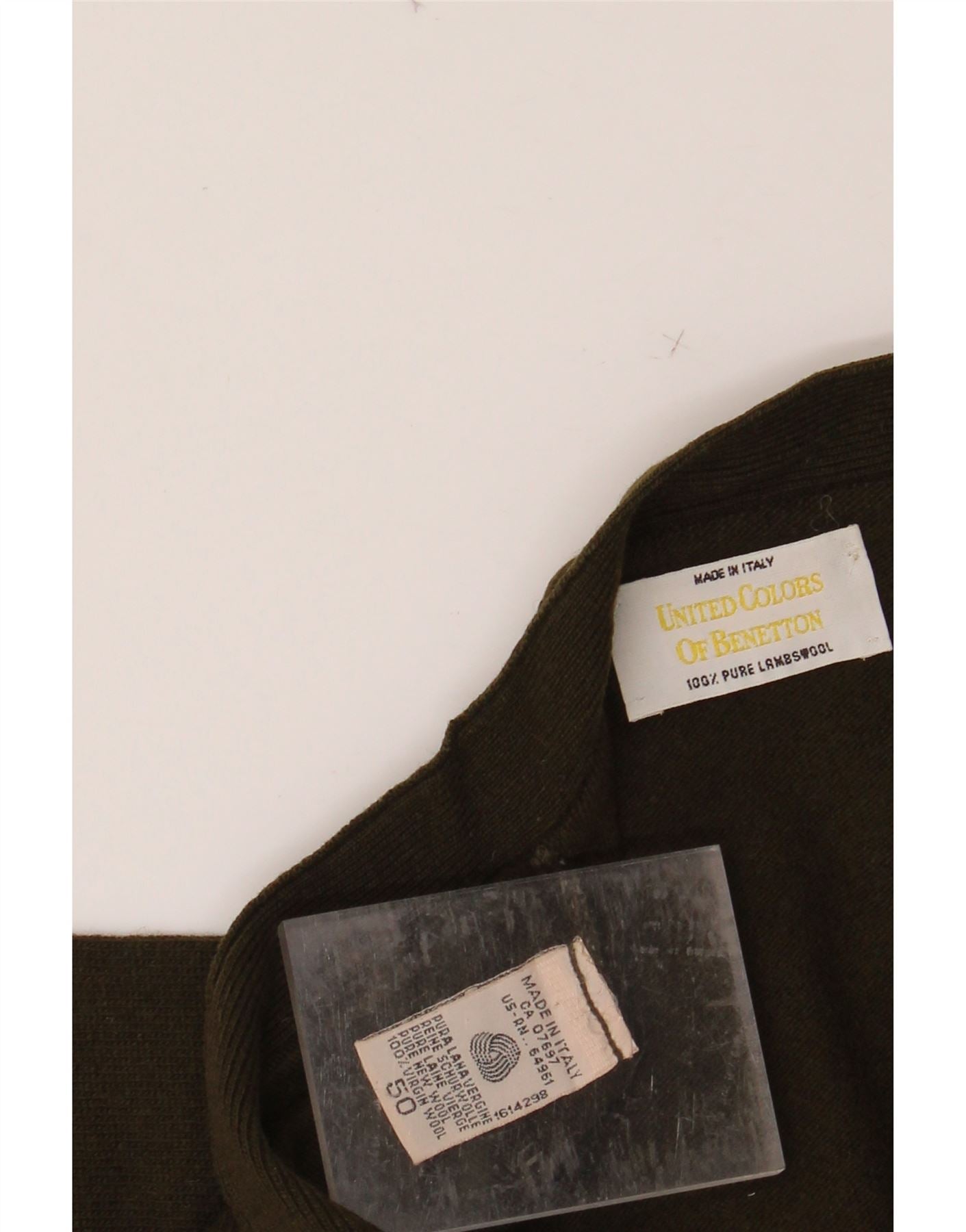 BENETTON Mens Cardigan Sweater IT 50 Medium Green New Wool