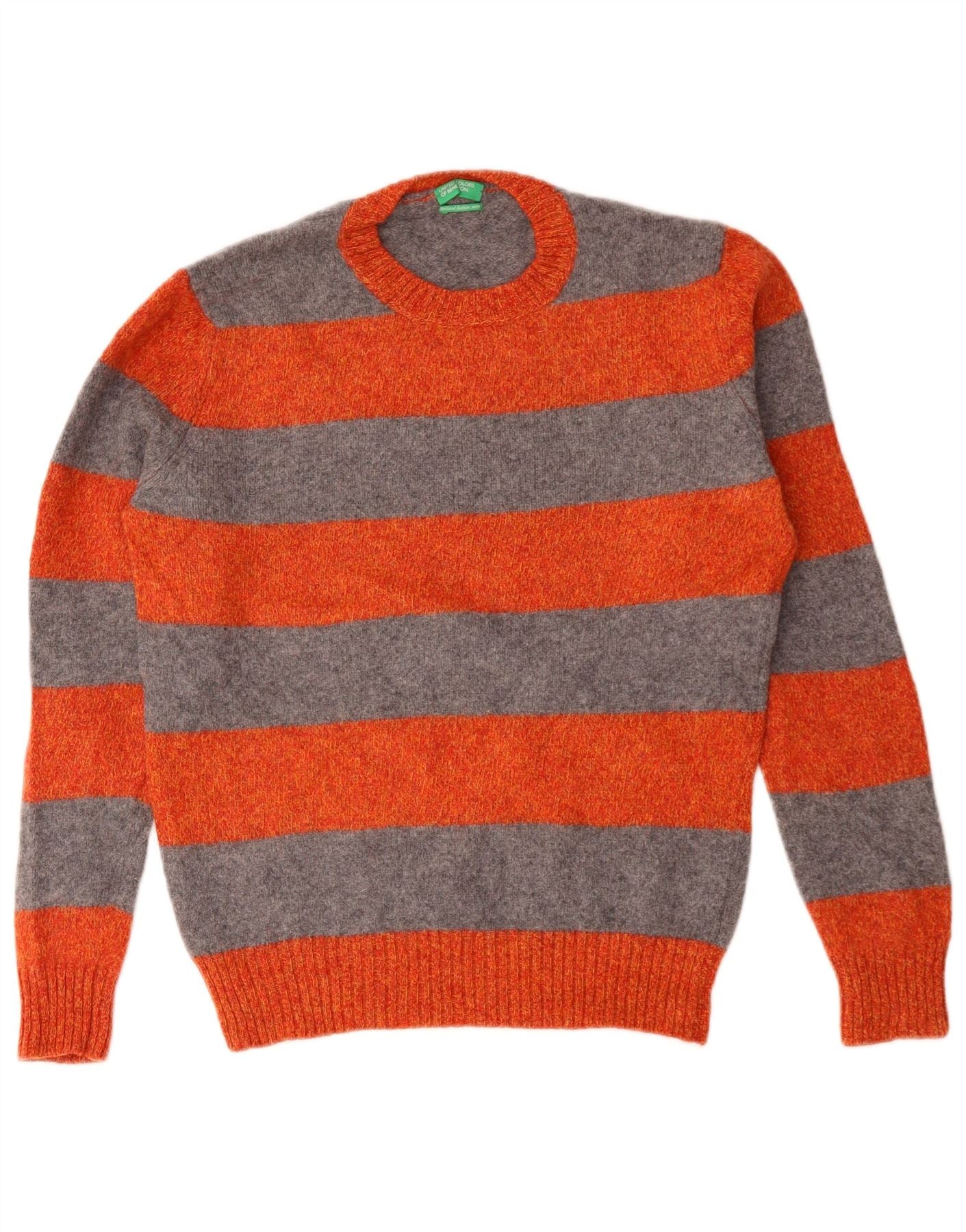 Home > Abbigliamento Benetton vintage > Uomo > BENETTON Maglione girocollo da uomo a righe piccole in lana vergine a righe arancioni