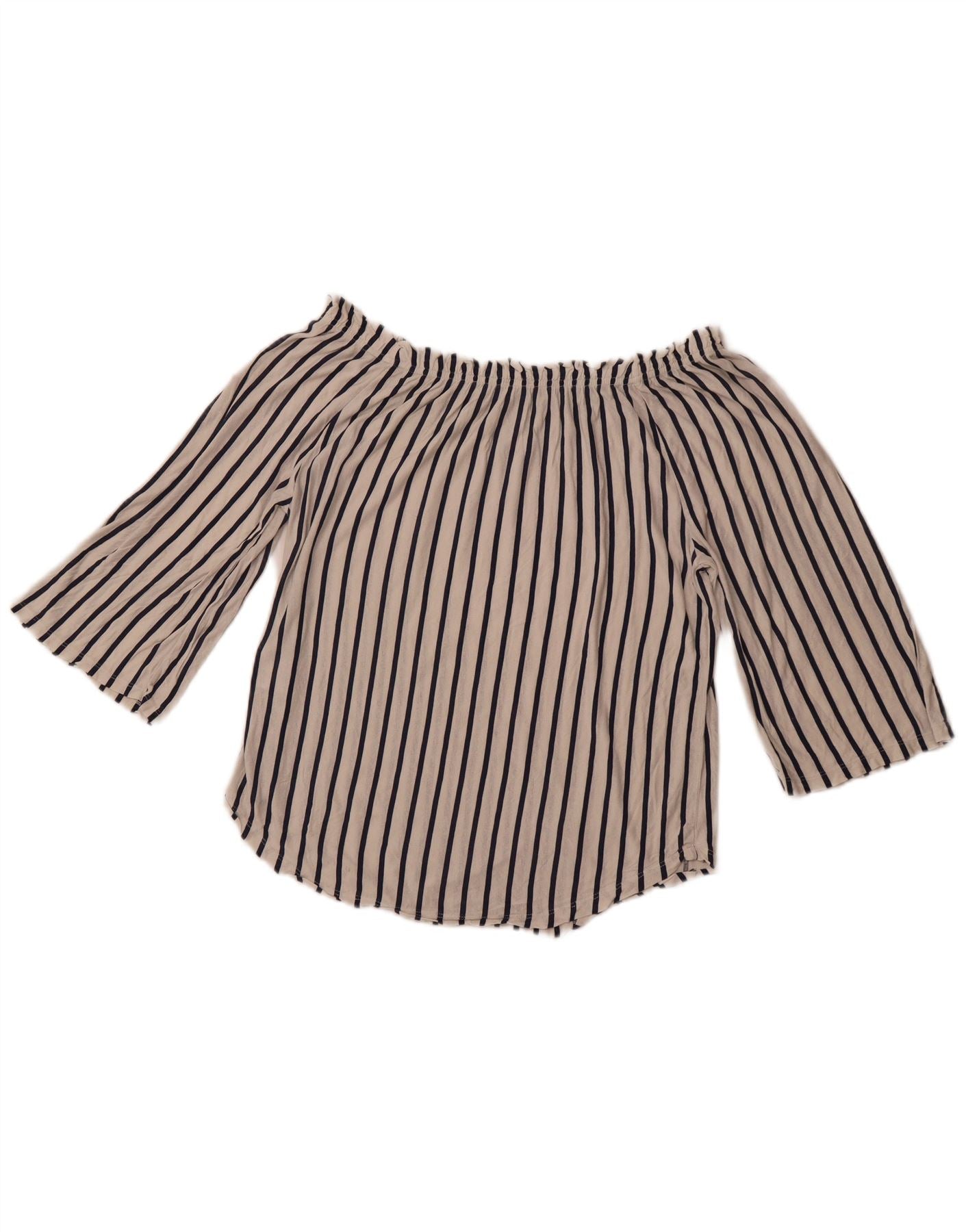 BENETTON Top da donna con spalle scoperte e maniche a 3/4 UK 14 a righe bianche medie