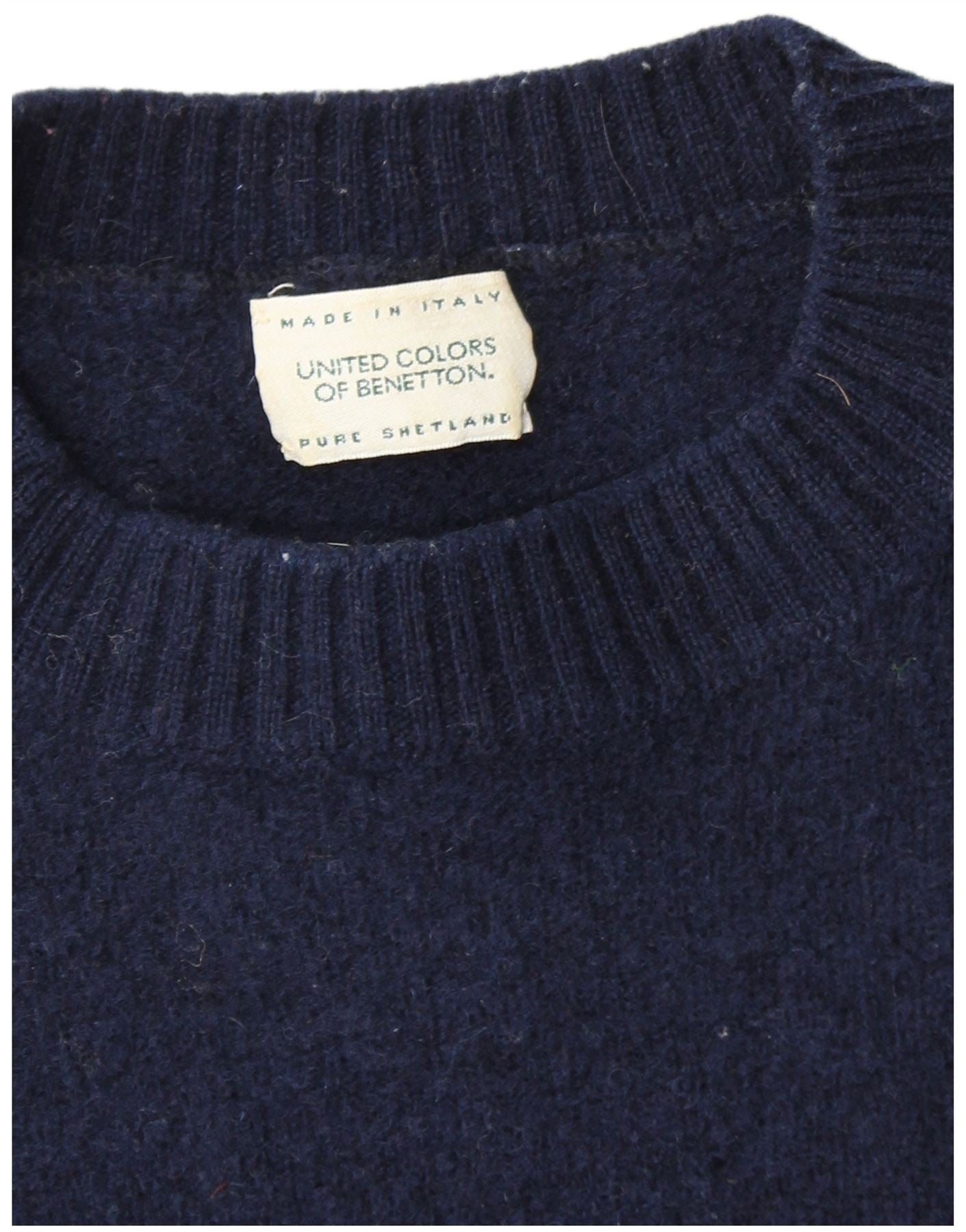 BENETTON Maglione girocollo da donna UK 14 Lana medio blu navy